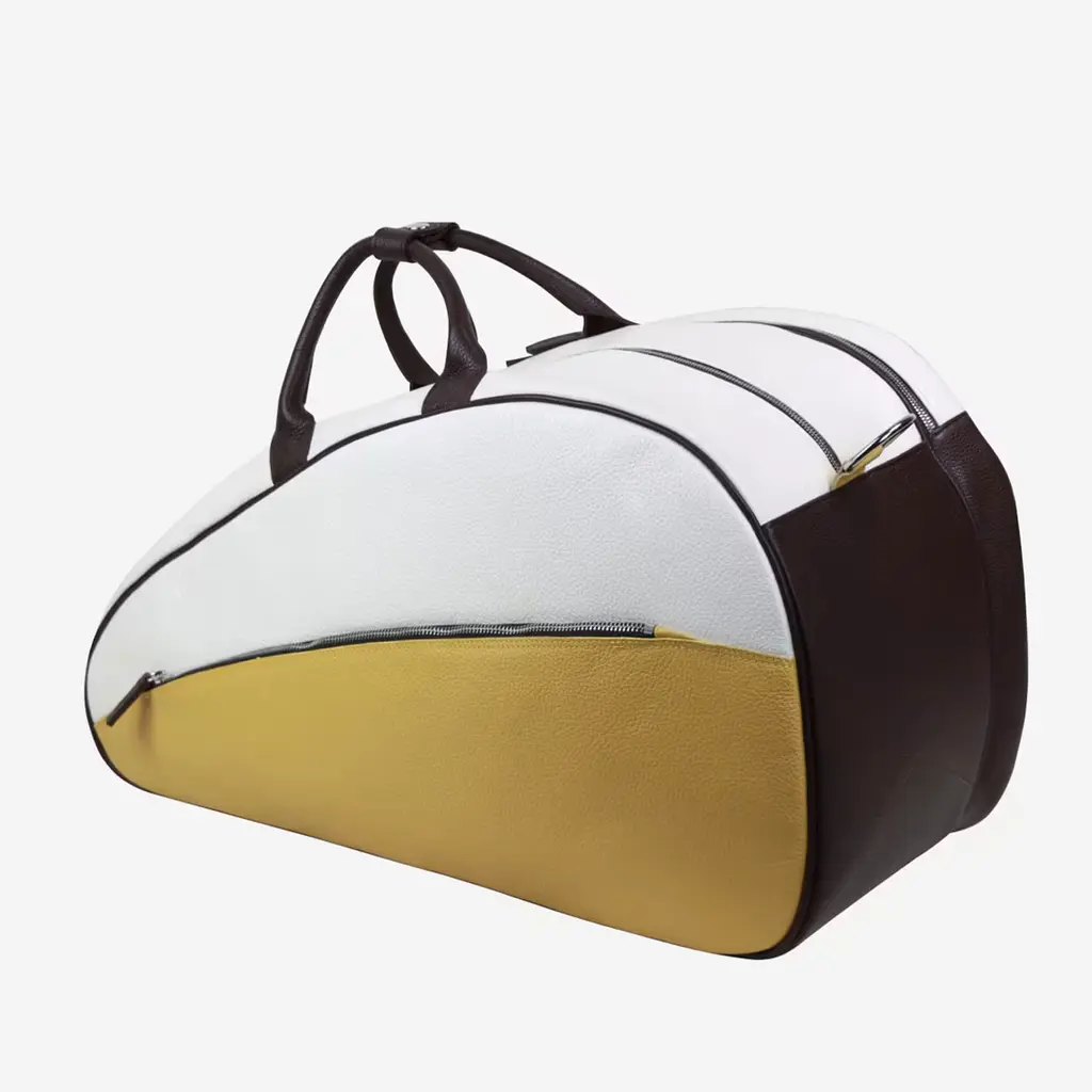 A testament to Italian craftsmanship, this handmade leather bag introduces elegance and style into paddle tennis and pickleball. Meticulously crafted, it features vast compartments to store rackets, playing balls and other equipment. Timeless and versatile, its sophisticated aesthetic and ergonomic design are embedded in the waterproof feature of the leather, in the double zip opening up to an upholstered interior, practical handles and an adjustable shoulder strap.