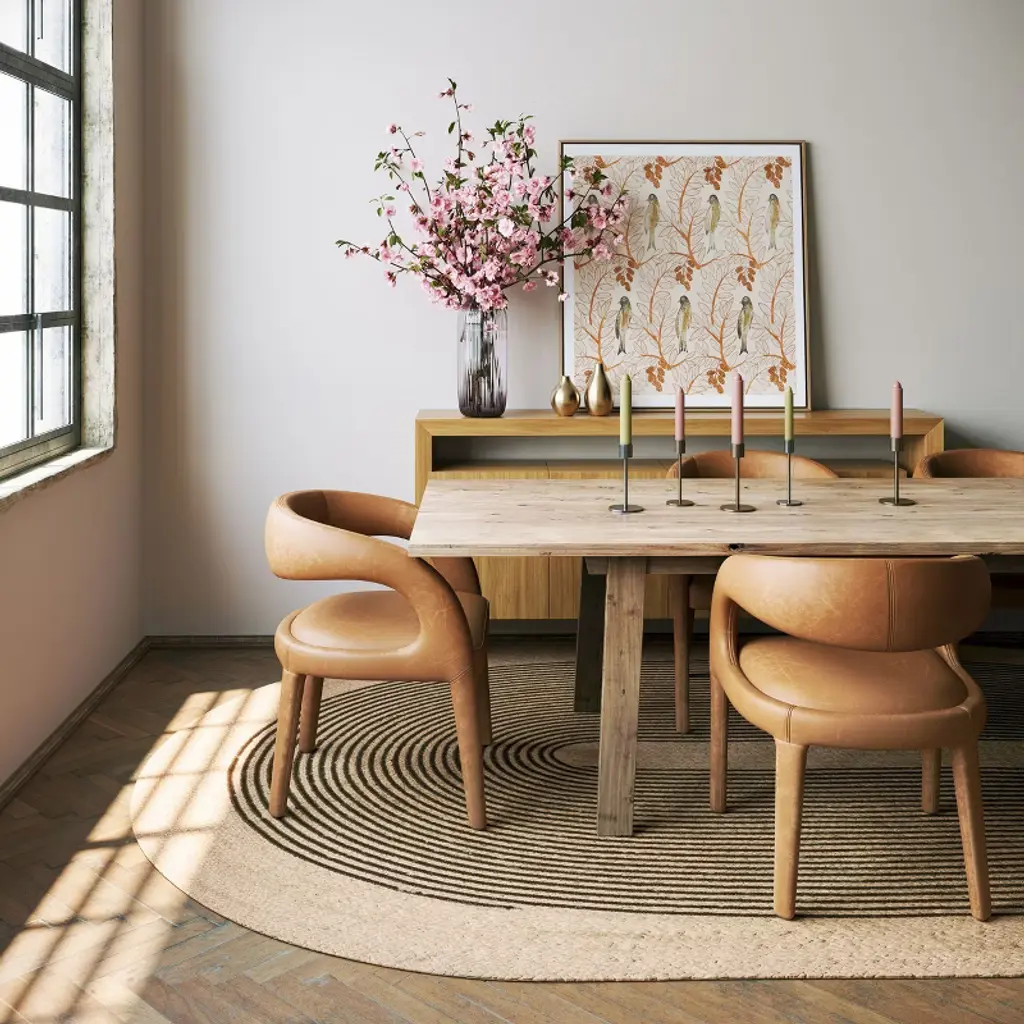From Padma Lakshmi's exclusive collection with Rugs USA, the Stillpoint rug is inspired by moments of pause and inner calm. It features a subtle radiating pattern that feels both modern and organic. Crafted from natural jute with contrasting cotton accents, it’s a grounding piece designed to create space for reflection and reset.