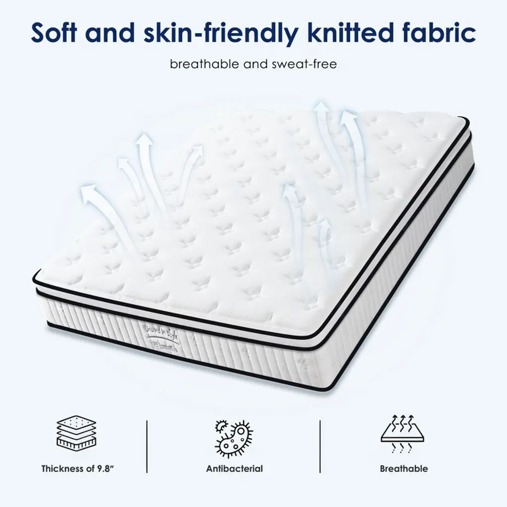 Paged 10 Inch Hybrid Mattress Twin Size Mattress With Individually Pocketed Innerspring, Medium Firm For Bedroom, White