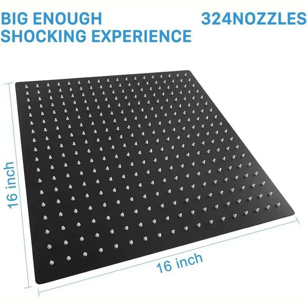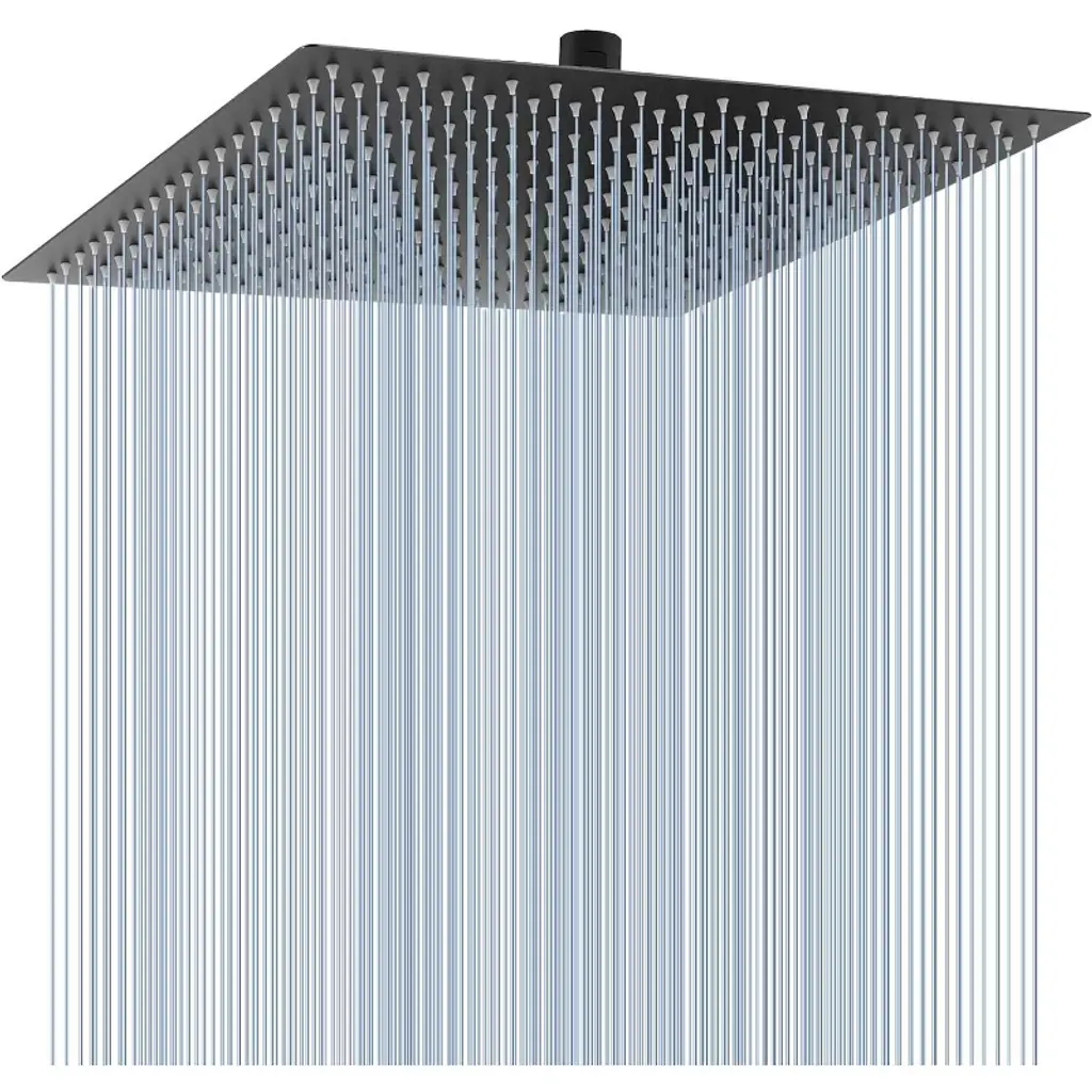 Paged 16" Rain Shower Head High Pressure Shower Head With Square Ultra Thin 304 Stainless Steel And Anti-clog Nozzles For Bathroom, Matte Black
