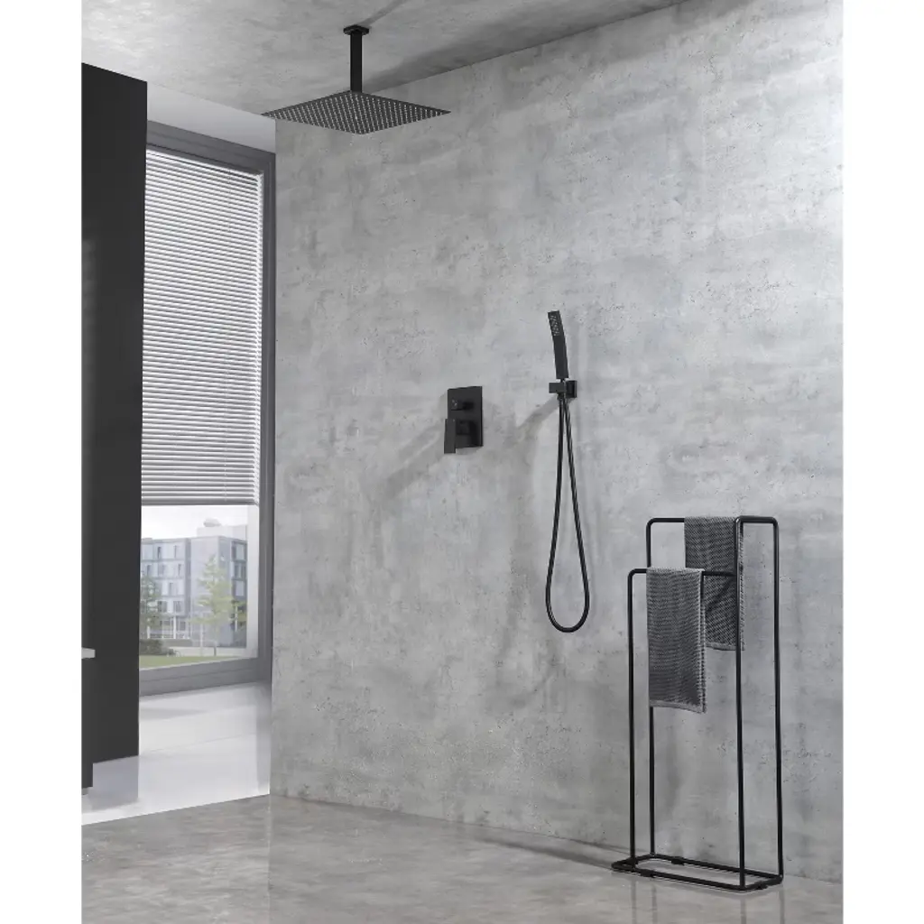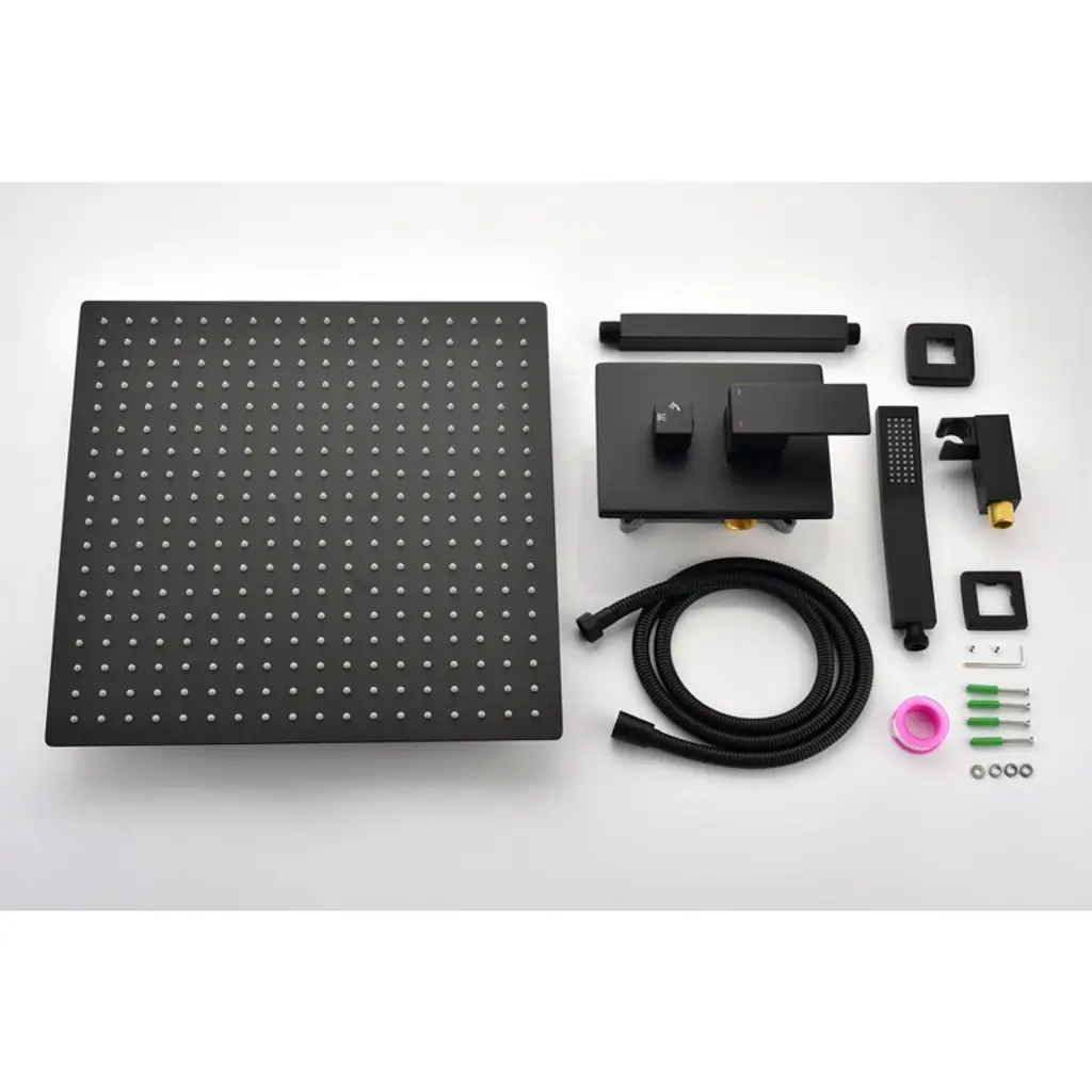 Paged 16" Shower Head Stylish Rain Shower Head With Handheld Shower For Rest Room, Matte Black