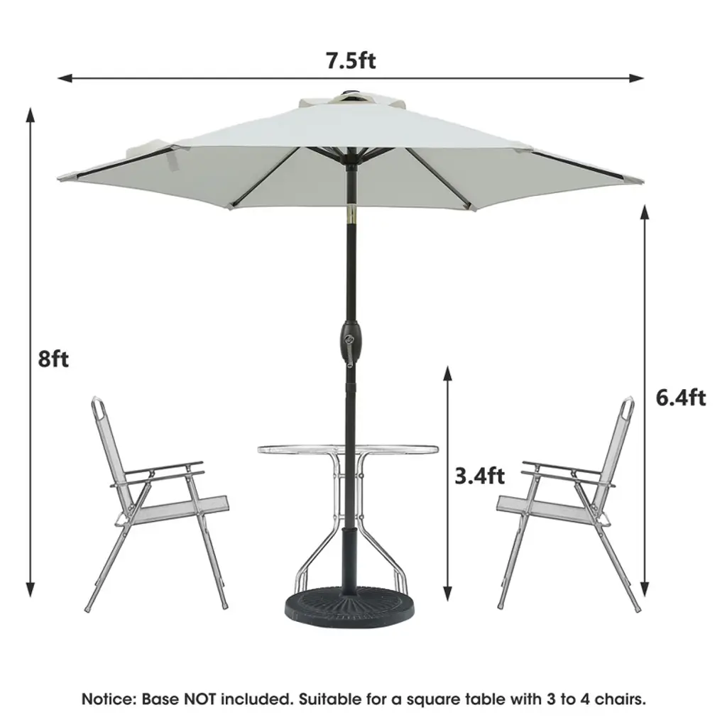 Paged 7.5ft Patio Umbrella Modern Market Umbrella With Push Button Tilt, Crank And 6 Ribs For Garden And Poolside, Base Not Included, Gray