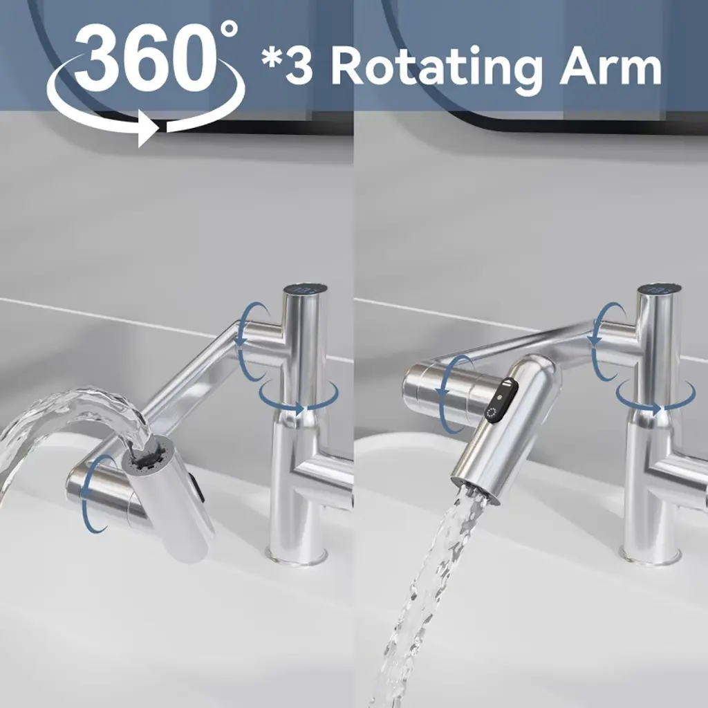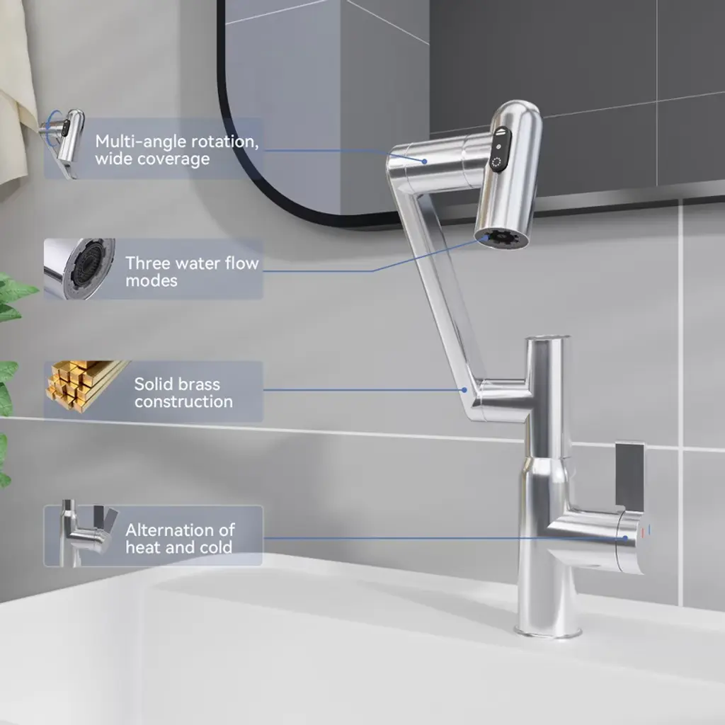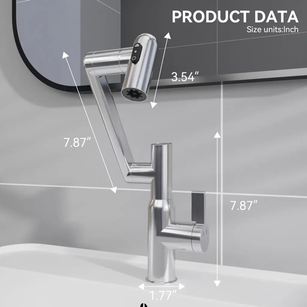 Paged Bathroom Faucet Rotary Bathroom Sink Faucet With Spray Function And Temperature Display, Faucet For Bathroom Sink, Chrome