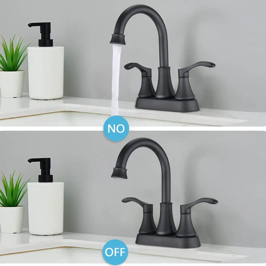Paged Bathroom Faucets With 360°swivel Spout, 4 Inch Centerset Bathroom Sink Faucet With Pop Up Drain, Matte Black