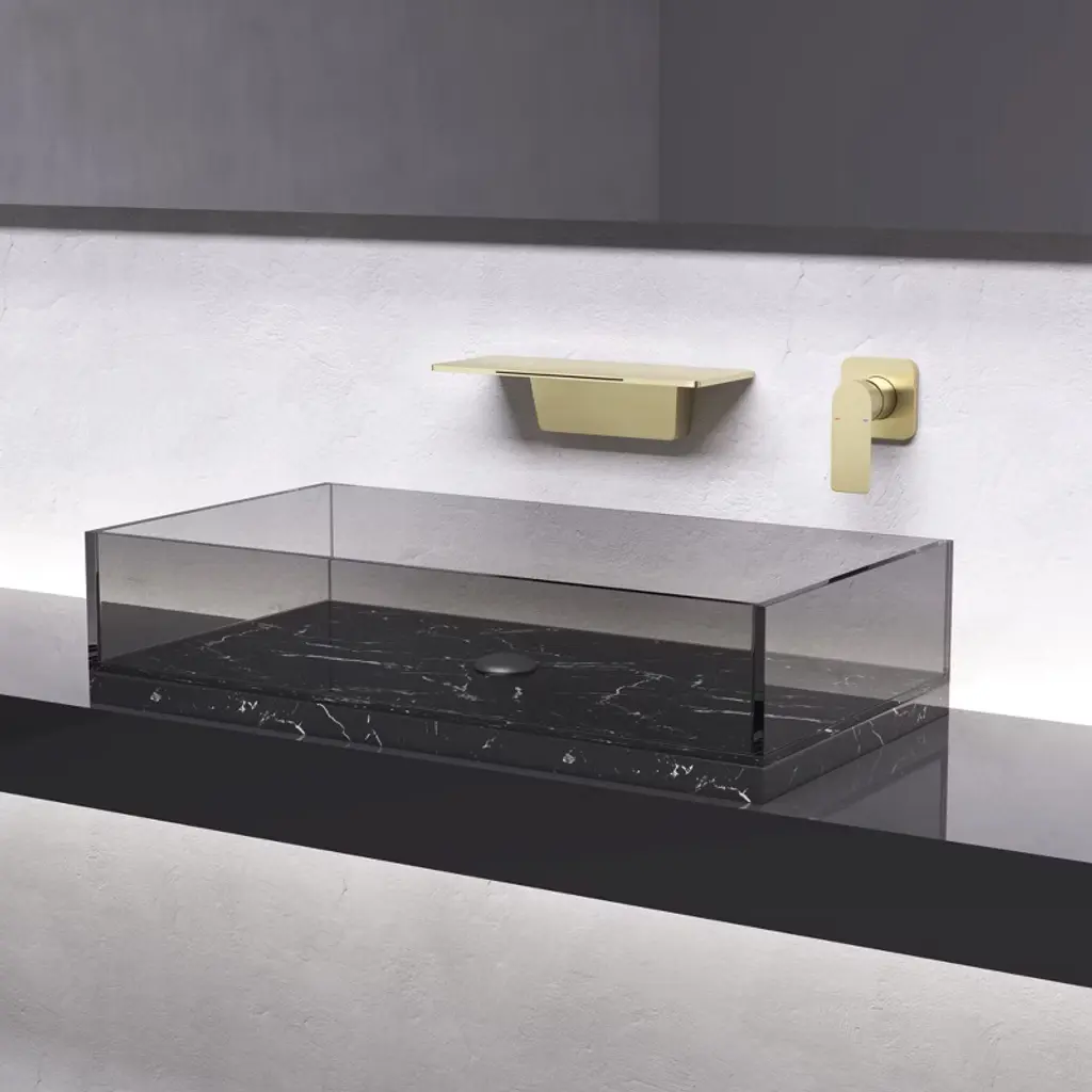 Paged Bathroom Sink Faucet Wall-mounted Bathroom Faucets With Waterfall Spout Design, Faucet For Bathroom Sink, Gold