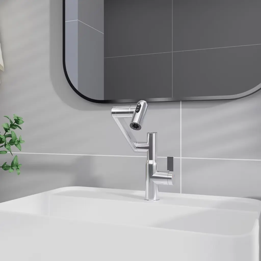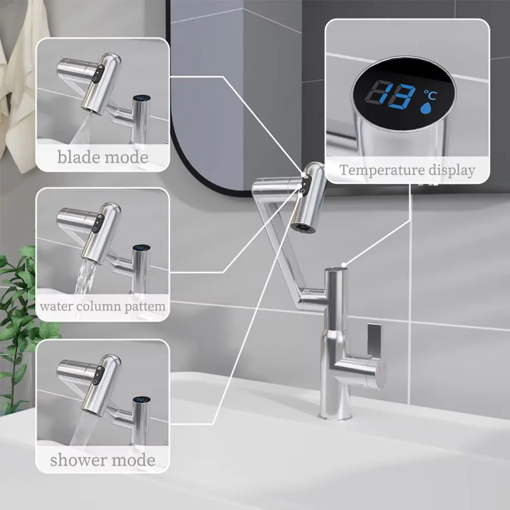 Paged Bathroom Sink Faucet With Hot & Cold And 360° Rotary,bathroom Faucetst With Spray Function And Temperature Display For Home Sinks,chrome