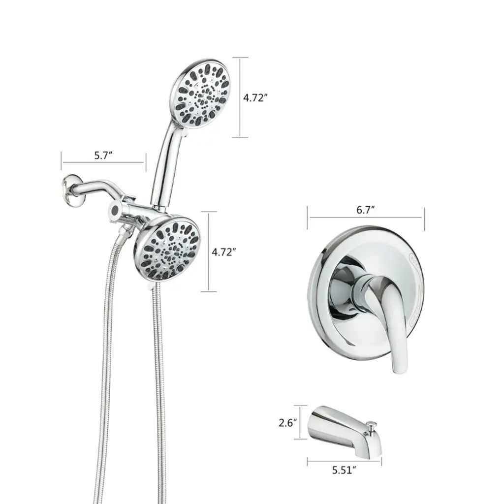 Paged High Pressure 2 In 1 Dual Shower Head Wall Mounted Shower Faucet Set With Tub Spout, Valve For Bathroom, Silver