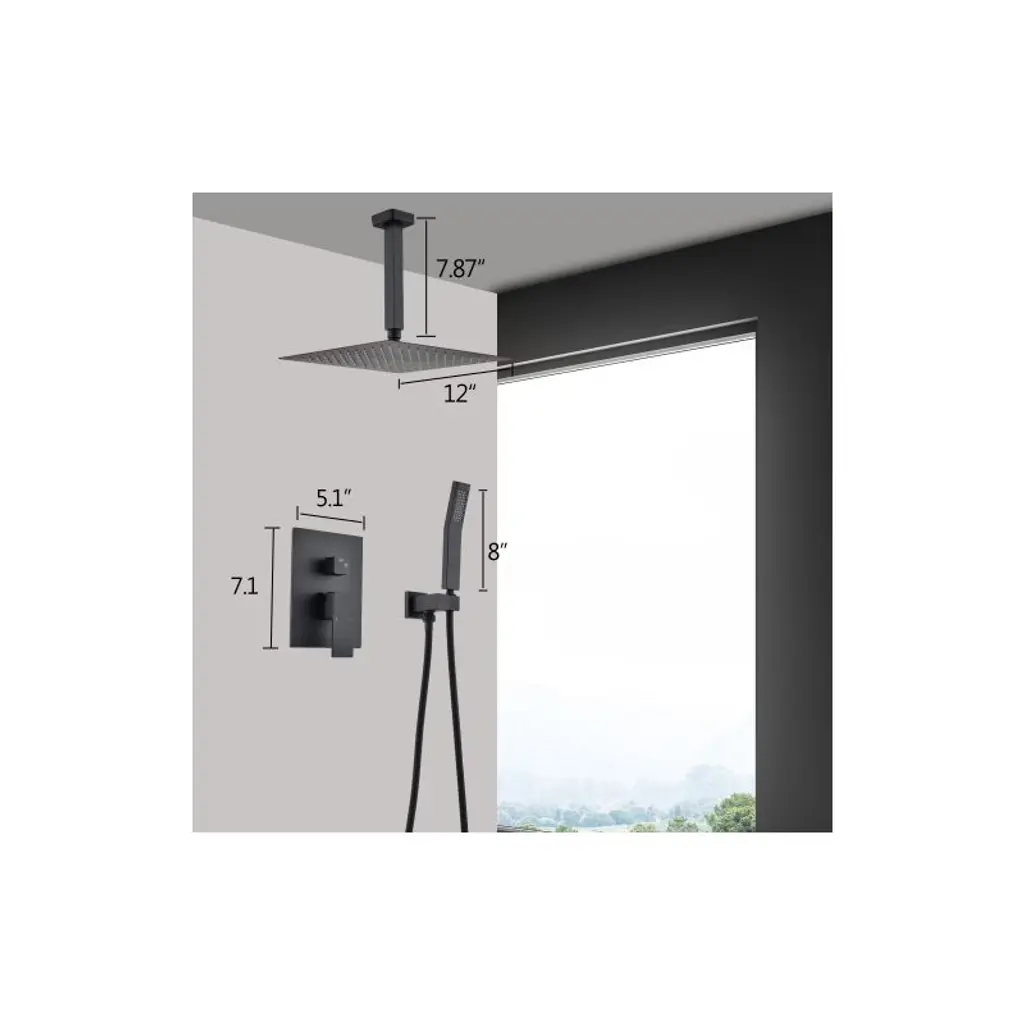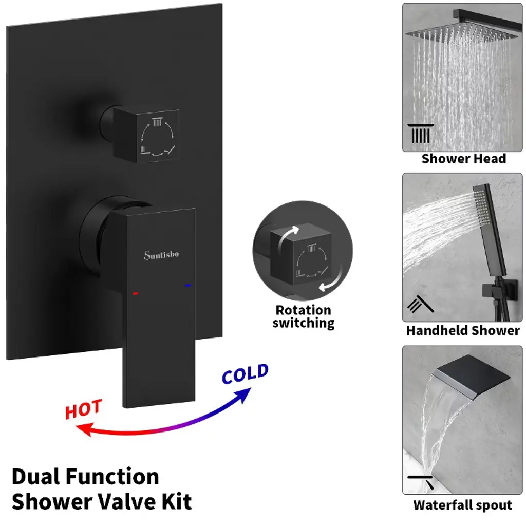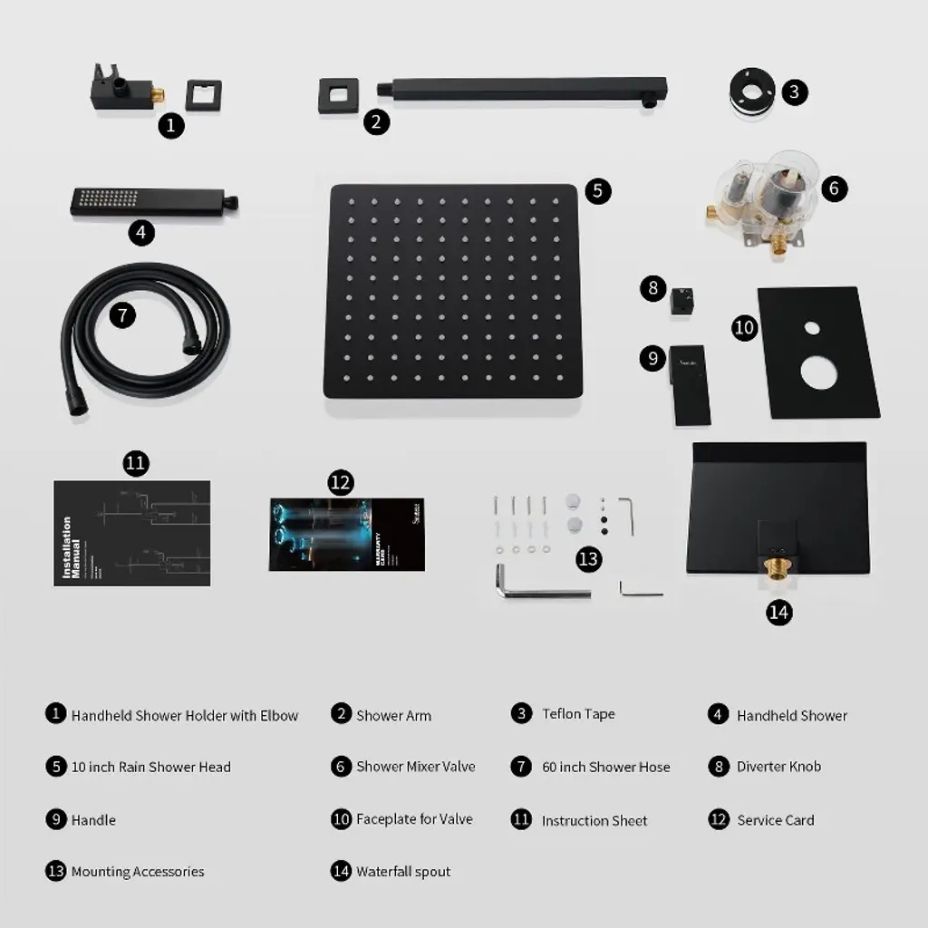 Paged High Pressure Shower Head With Handheld Modern Waterfall Shower Faucet Set With 10" Rainfall Shower Head For Bathroom, Restroom, Matte Black