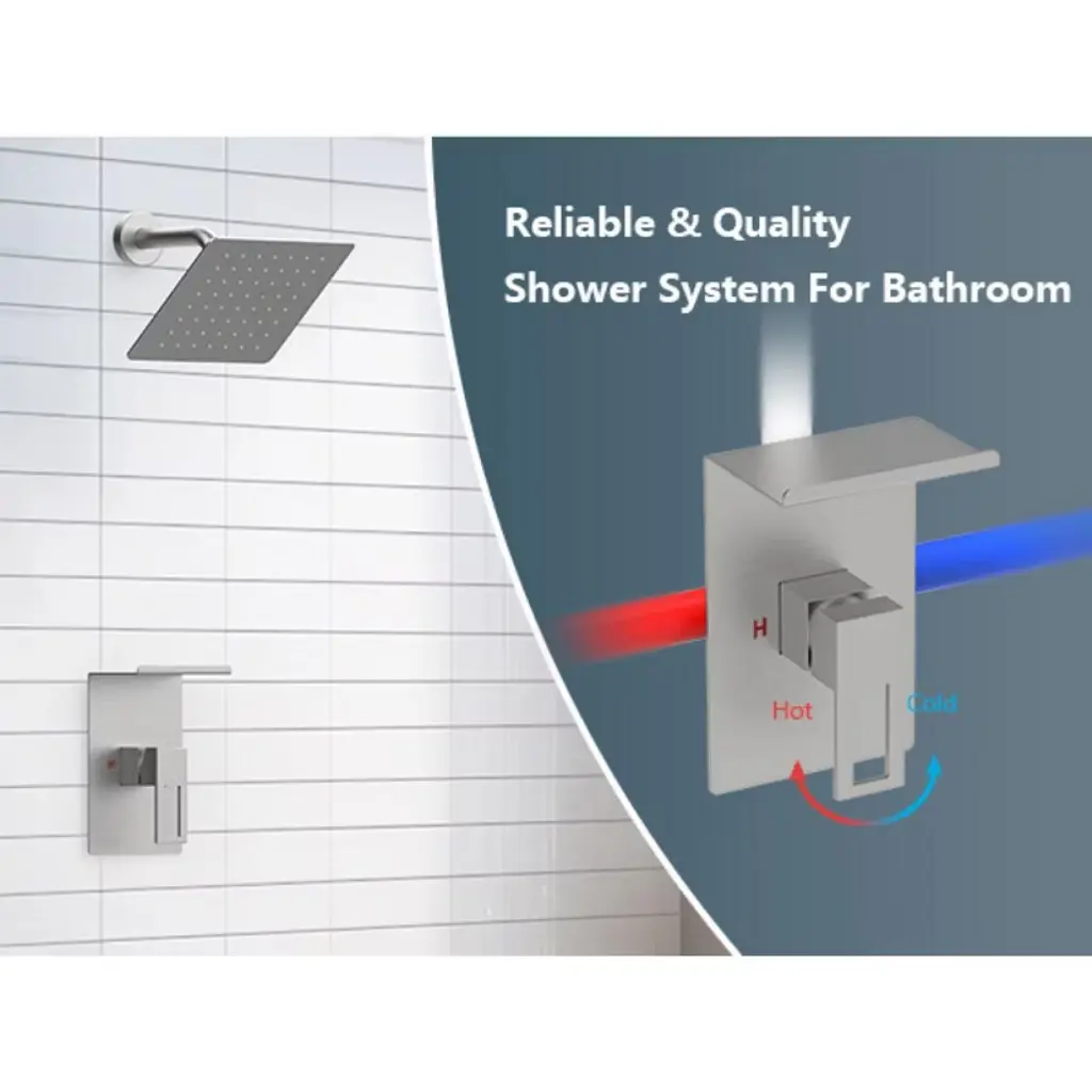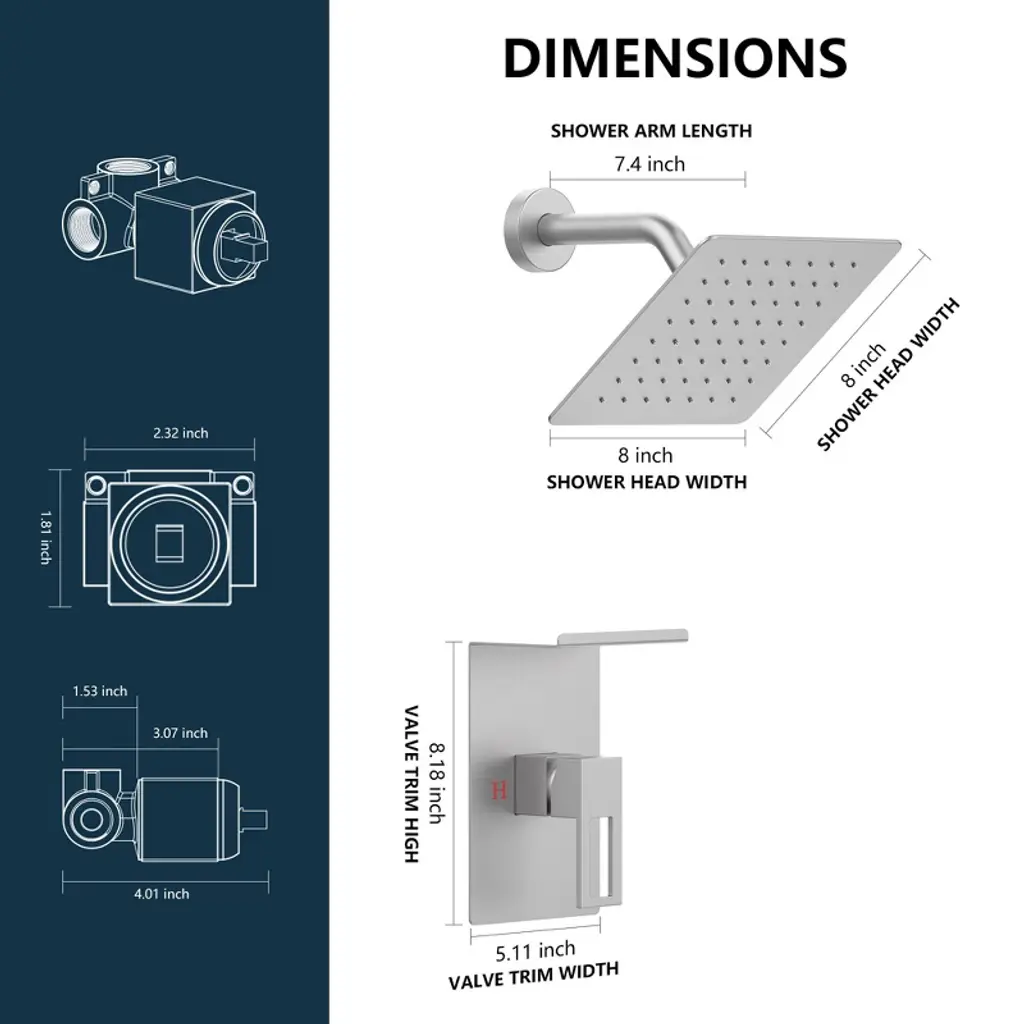 Paged Shower Head Modern, 8-inch Rain Shower With Storage Rack For Bathroom & Restroom, Silver And Gray