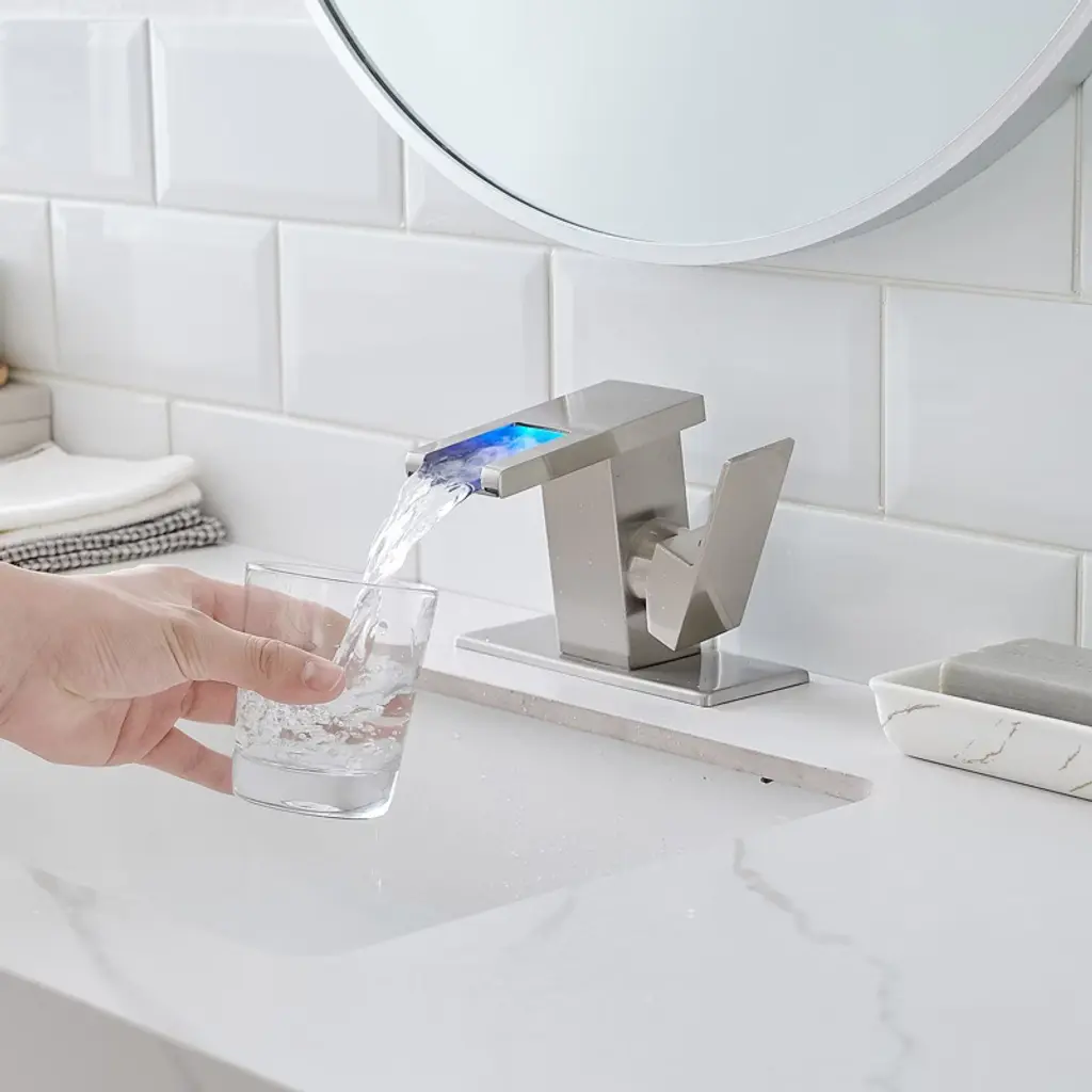 Paged Single Hole Bathroom Sink Faucet With 3 Colored Led Light,bathroom Faucets For Home Sinks,brushed Nickel