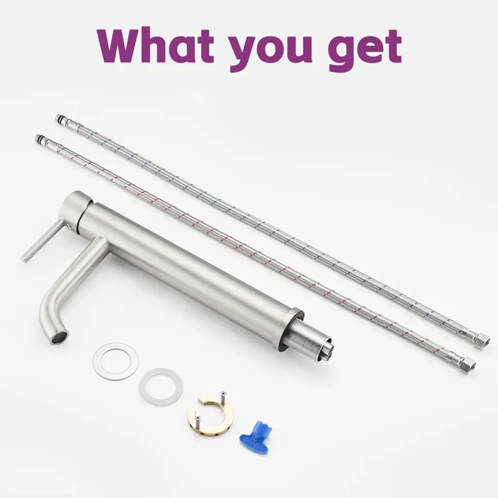 Paged Tall Bathroom Faucets Single Hole Sink Faucet Modern Vanity Basin Faucet With Corrosion-resistant Surface Treatment, Brushed Nickel