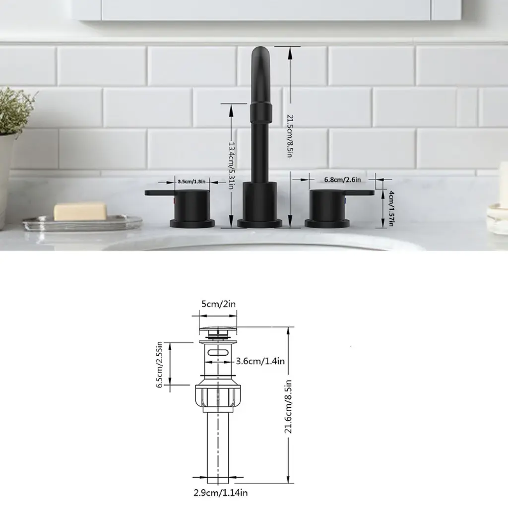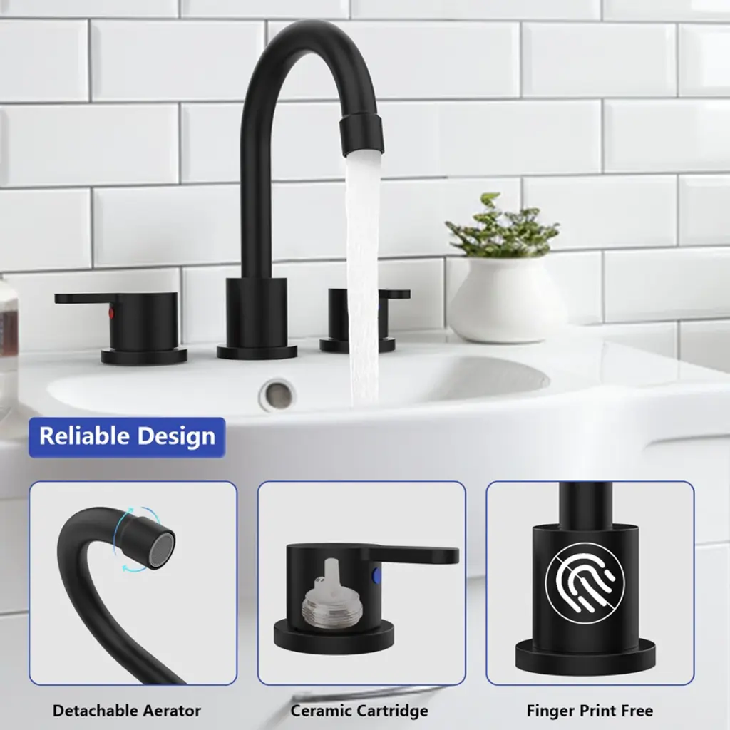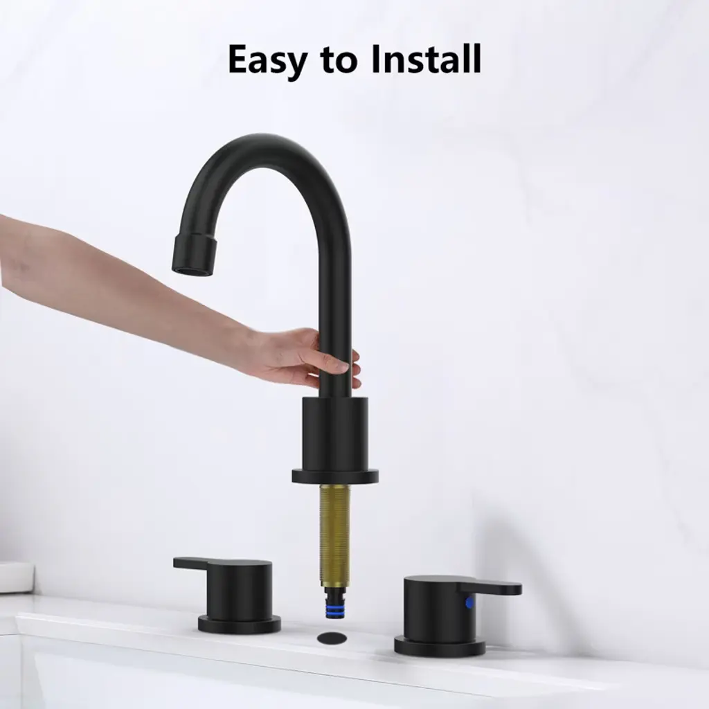 Paged Widespread Bathroom Faucet 8 Inch Lavatory Faucet With 360°swivel Spout And Pop Up Drain Assembly, 3 Hole Faucet For Bathroom, Matt Black