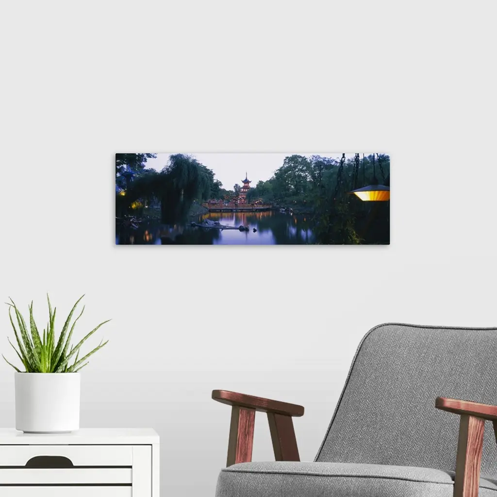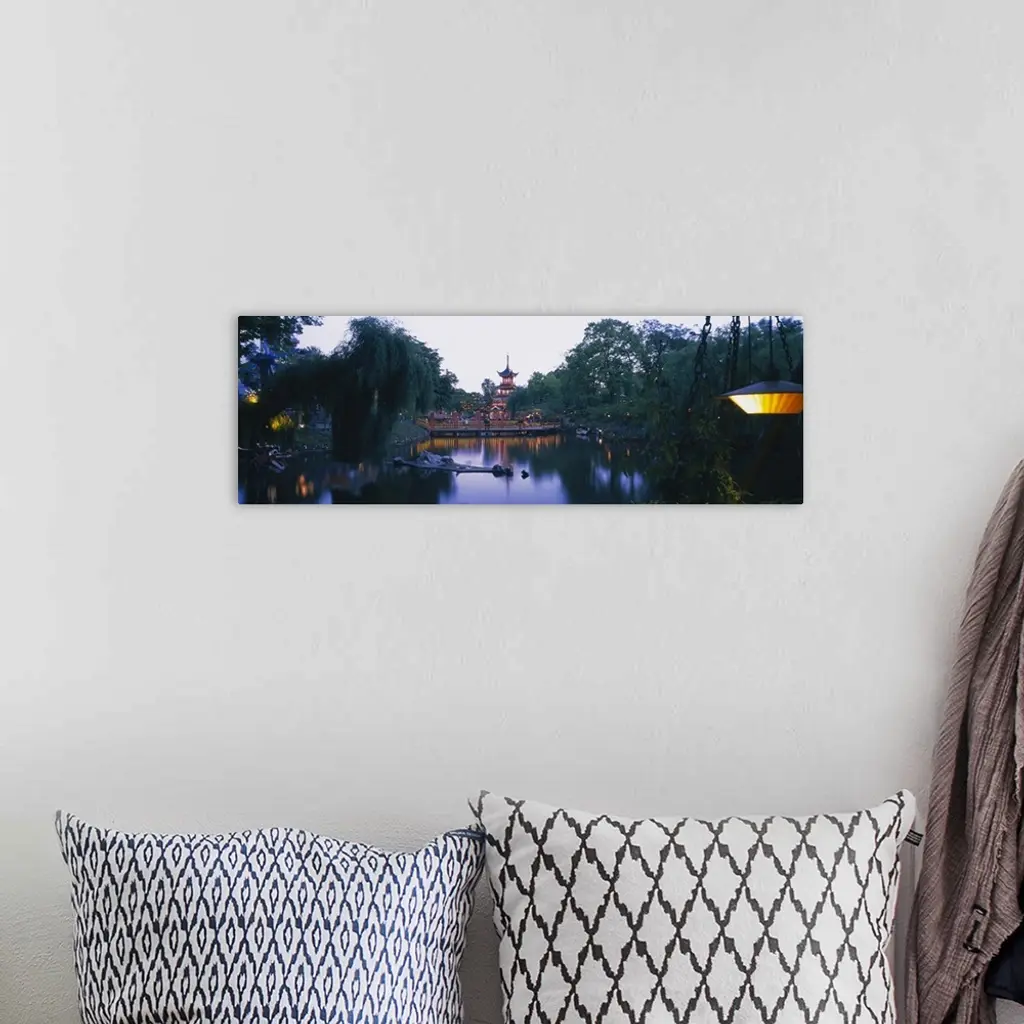 Pagoda lit up at dusk, Tivoli Gardens, Copenhagen, Denmark wall art for home and office decor. Discover canvas art prints, photos, mural, big canvas art and framed wall art in GreatBigCanvas.com's varied collections.