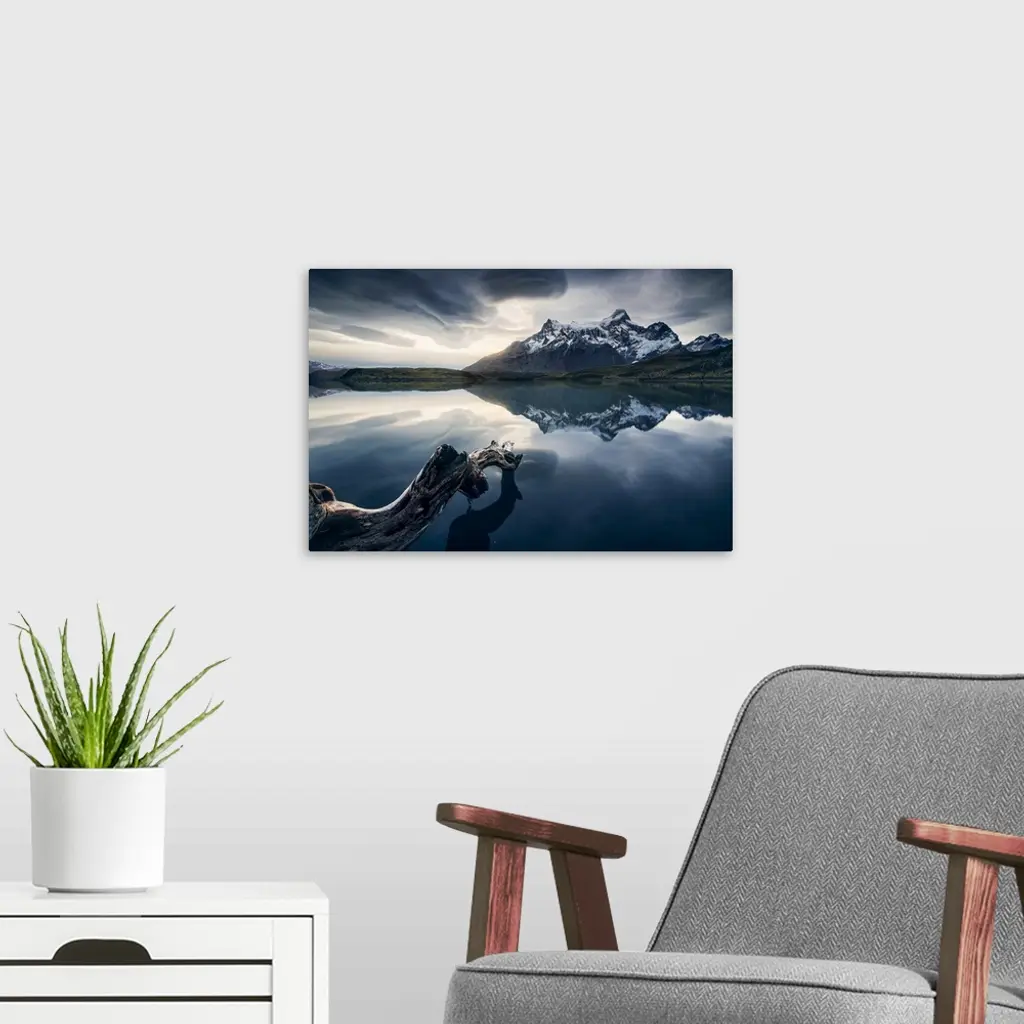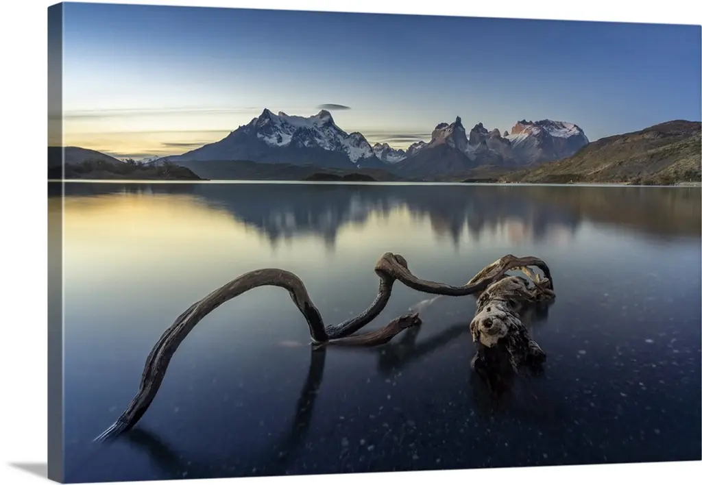 Paine Grande Reflected In A Lake At Sunset, Patagonia, Chile