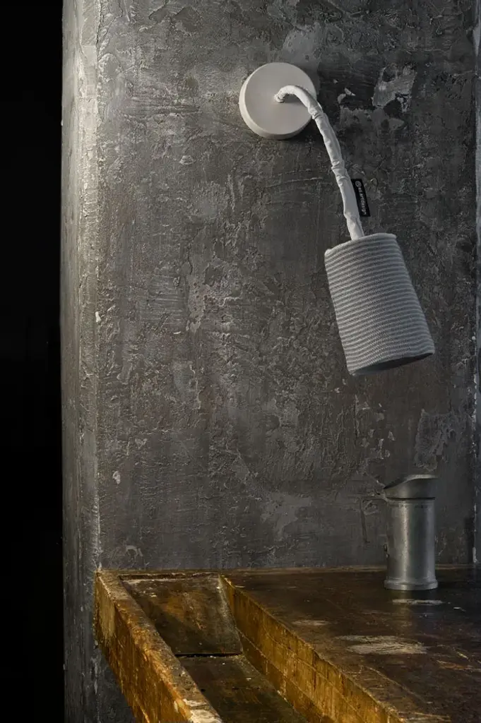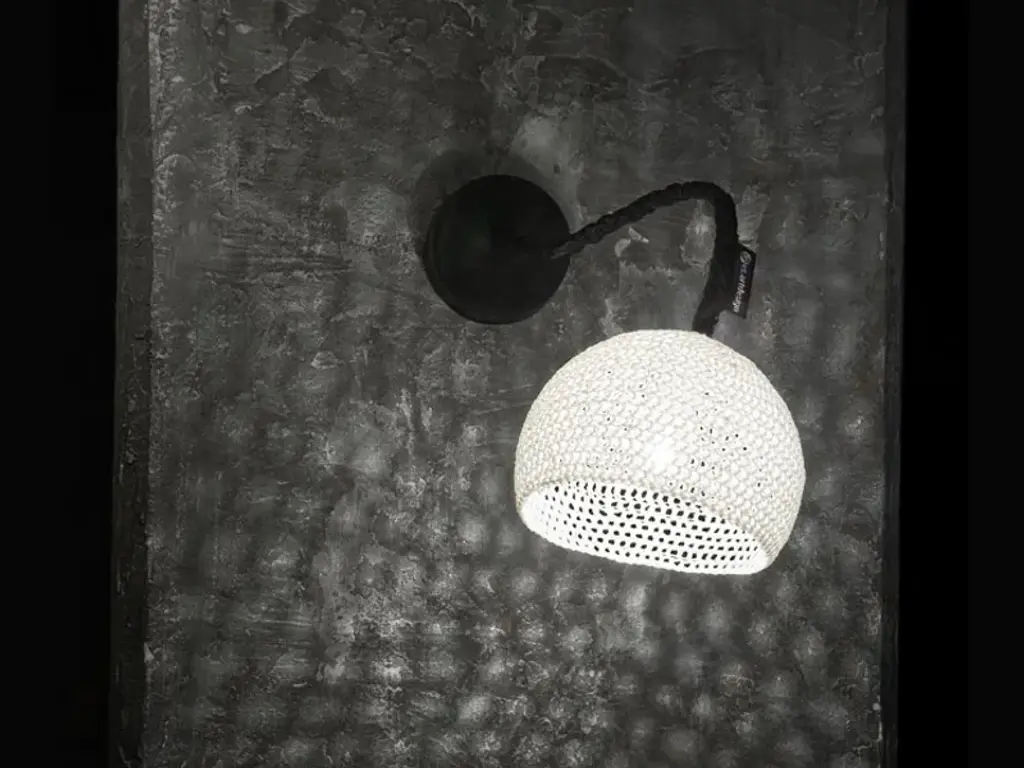 Some models of the Trame series present a structure in Nebulite® covered by a striped yarn, created especially for In-es.artdesign by specialized sartorial laboratories. The regular and geometric pattern of the fiber reminds of pop art, but the leading role is played by the color – blue, purple, red, yellow - of the actual lines. When the lamp is on, the chromatic effect, mixed with the light, creates a multitude of colors.There is another proposal dedicated to the wall lamp and table lamp models of this collection. It consists of a nylon covering, white or black, with a silicon name tag of the logo, that “dresses” the flexible tube. This “flexible arm” can be moved, to project the light where you prefer.The new collection Trame, designed by the artist/ designer Oçilunam for In-es.artdesign, is a family of lamps created with handcrafted techniques, typical of designer clothing.