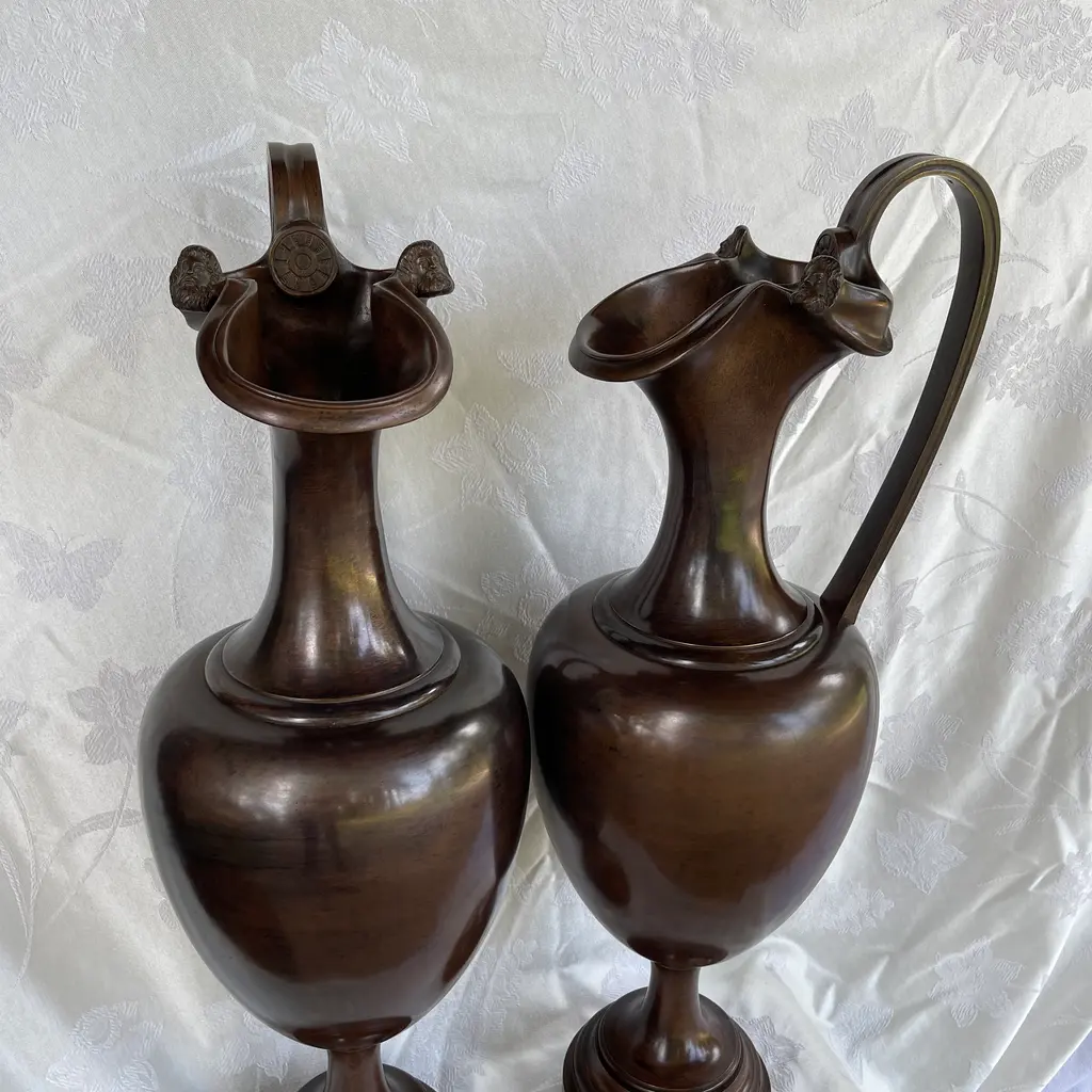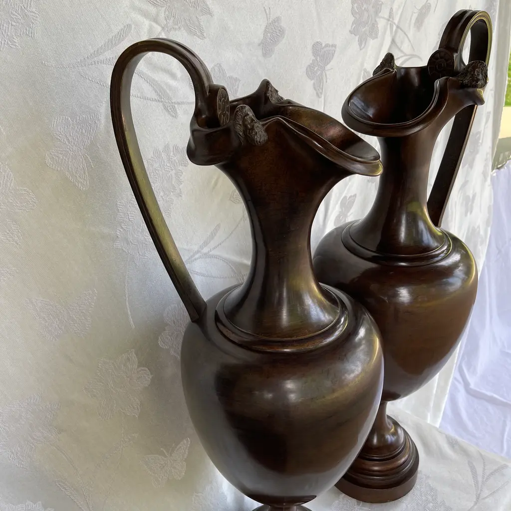 Pair Of 1900s Classic European Bronze Antique Ewers