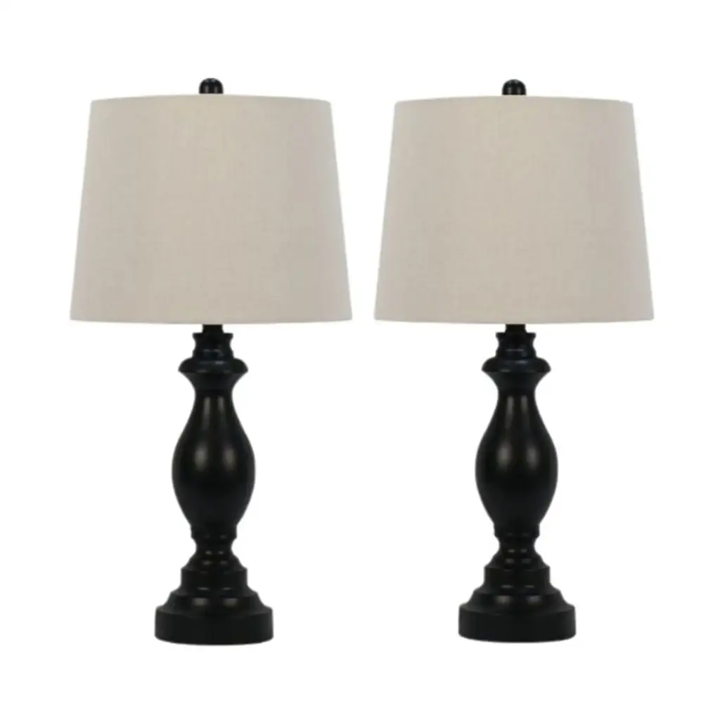 This pair of 26" metal table lamps with USB port are sure to instantly charm. Attention to detail can be found in the striking look and stunning design that will add a subtle transitional flare to your favorite space. The satin black finish is among the most desired in homes today! Lamps include designer shades made of décor friendly oatmeal linen. Lamps come complete with an easy to use on/off switch plus a USB port. These lamps take 1 bulb with a maximum wattage of 100 (Not Included) and are UL & CSA listed. Showcase your discerning tastes brilliantly with this item. The stylized, metal look possesses its own presence while illuminating your exquisite decorating tastes. If you enjoy the graceful lines of transitional designs, these are the lamps for you! Bring this item home! You will be glad you did!