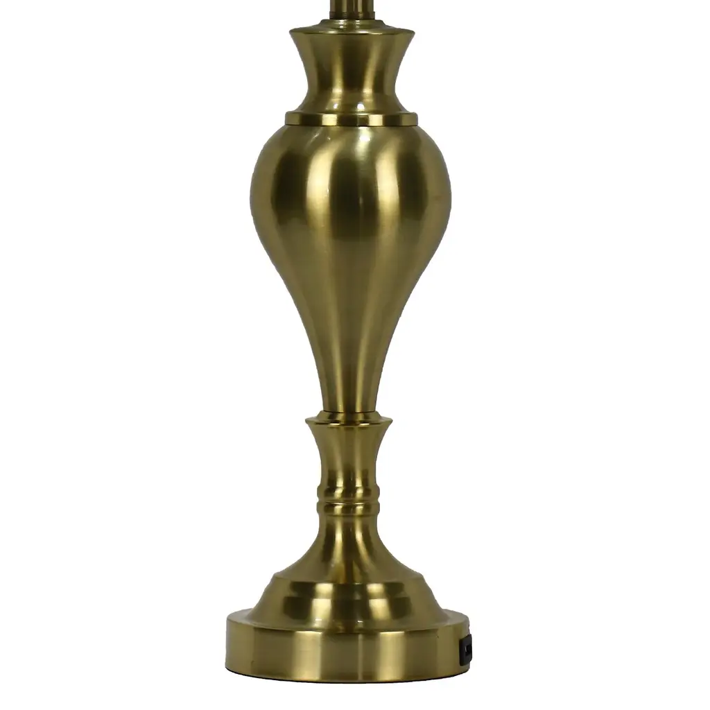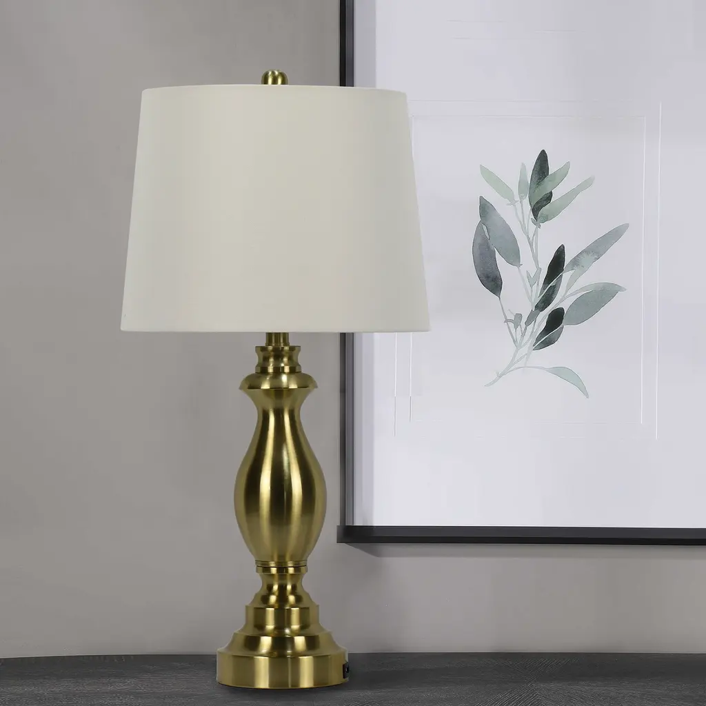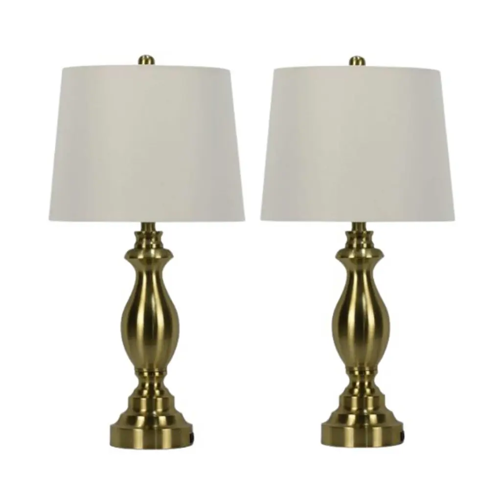 This pair of 26" metal table lamps with USB port are sure to instantly charm. Attention to detail can be found in the striking look and stunning design that will add a subtle transitional flare to your favorite space. The soft gold finish is among the most desired in homes today! Lamps include a designer shade made of décor friendly cream linen. Lamps come complete with an easy to use on/off switch plus a USB port. These lamps take 1 bulb with a maximum wattage of 100 (Not Included). Lamp is UL & CSA Listed. Showcase your discerning tastes brilliantly with this item. The stylized, metal look possesses its own presence while illuminating your exquisite decorating tastes. If you enjoy the graceful lines of transitional designs, these are the lamps for you! Bring this item home! You will be glad you did!