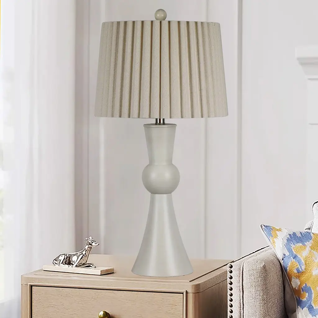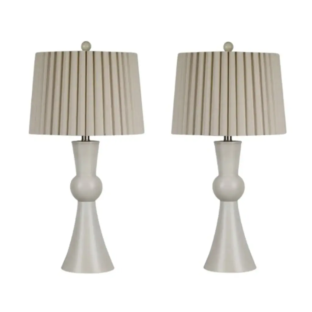 Pair Of 27" Metal Table Lamps In White With Designer Mini-Fluted Shades - 27 - 27