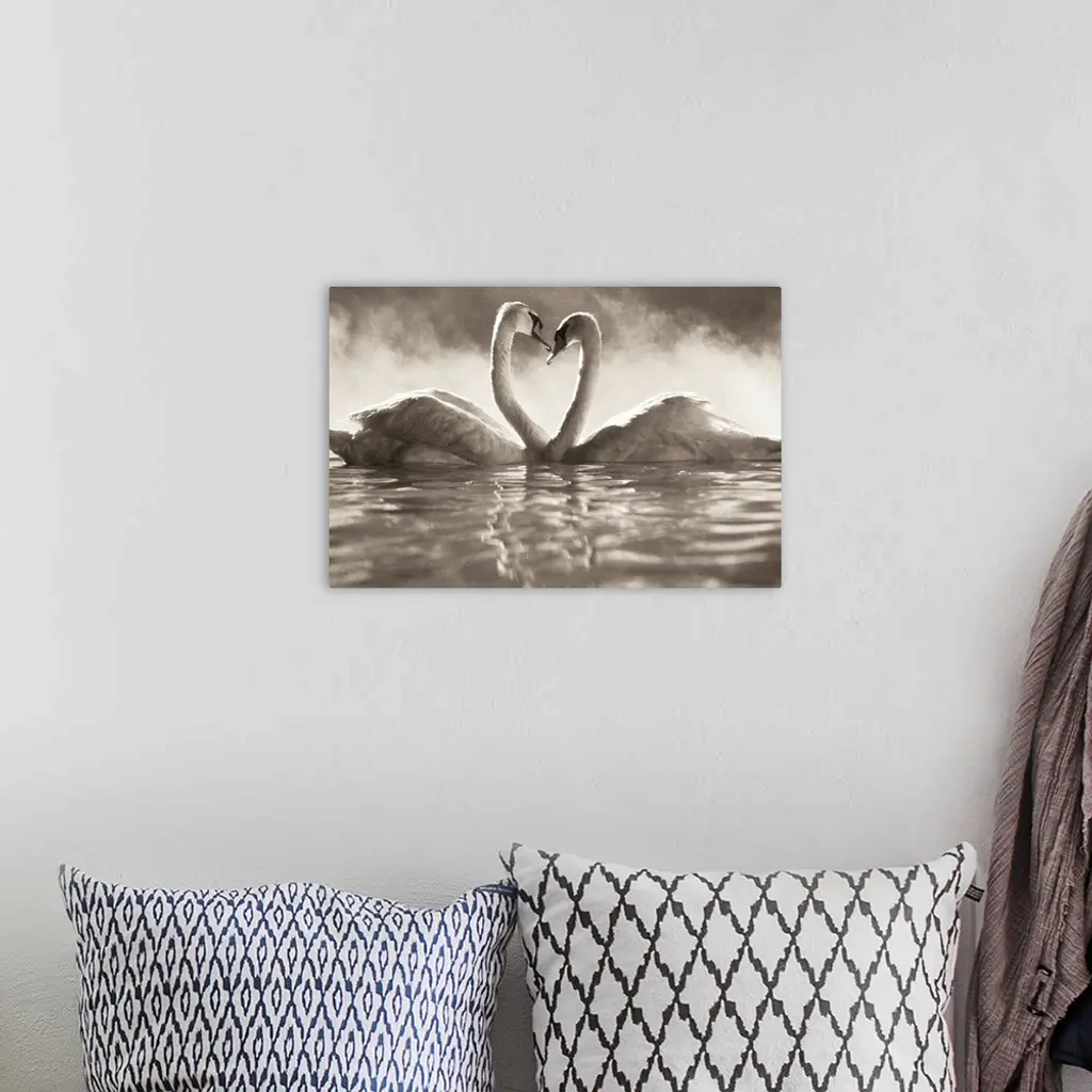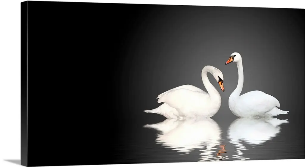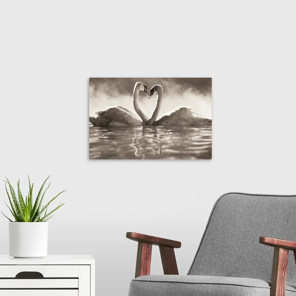 Pair of African swans faced toward each other wall art for home and office decor. Discover canvas art prints, photos, mural, big canvas art and framed wall art in GreatBigCanvas.com's varied collections.