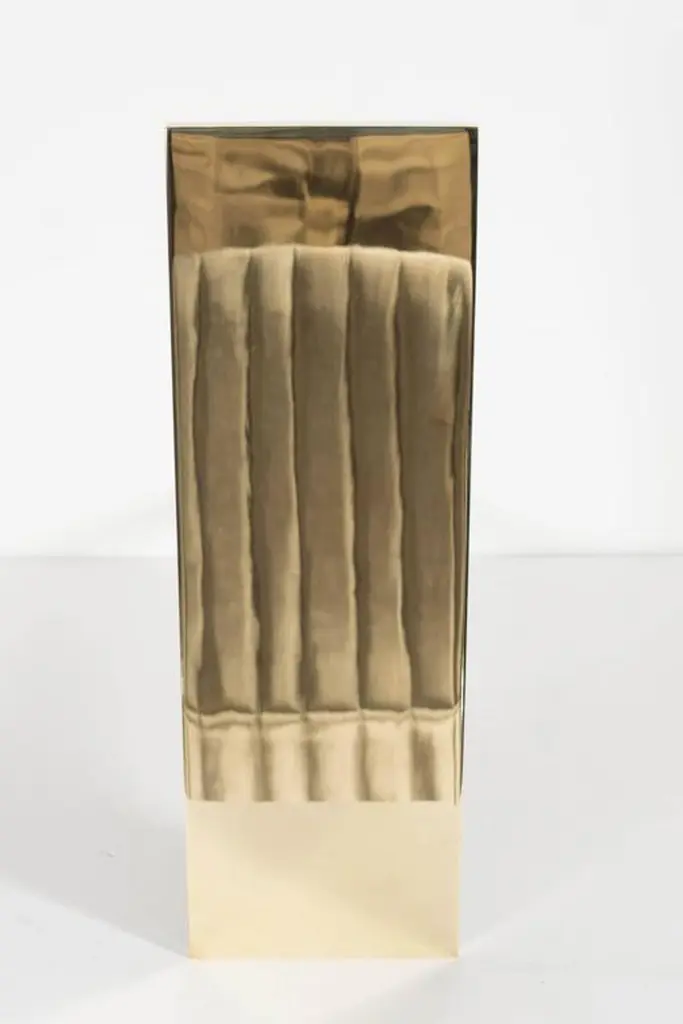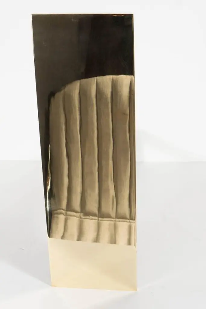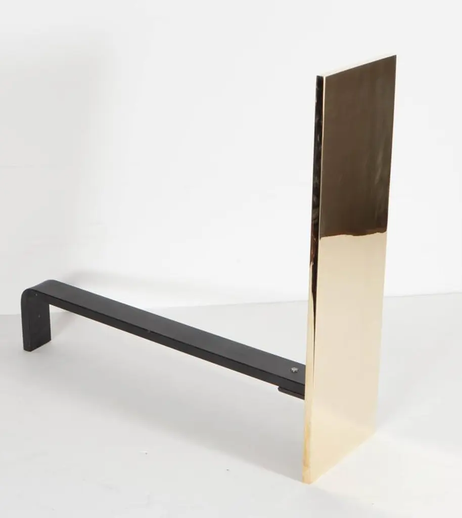 This ultra chic pair of custom andirons feature a minimalistic vertical rectangular front panel displayed in polished brass. They are fully customizable in terms of the dimensions and finish options include polished, brushed or antiqued nickel or brass. Please inquire for special orders. These can be beautifully accompanied by our custom range of fire tools and fire screens.