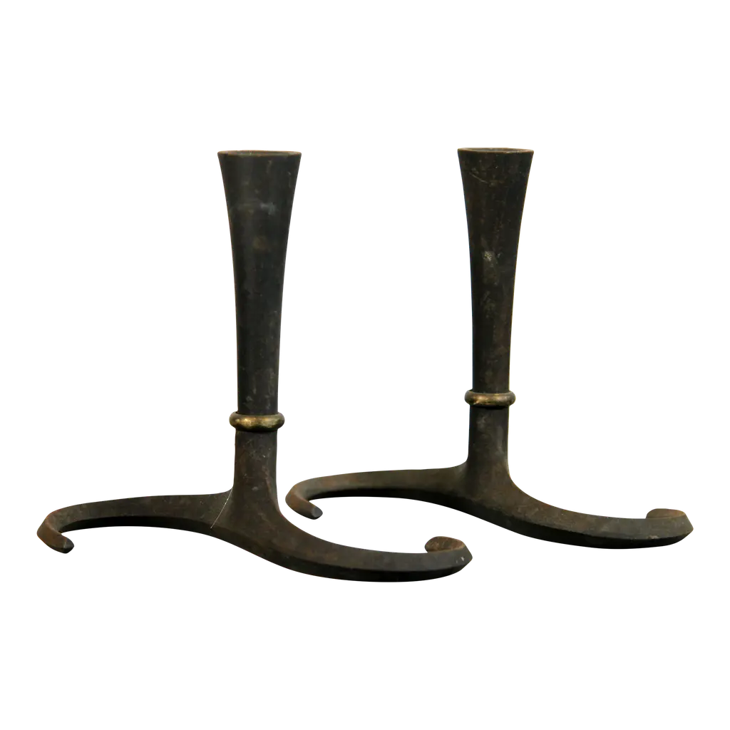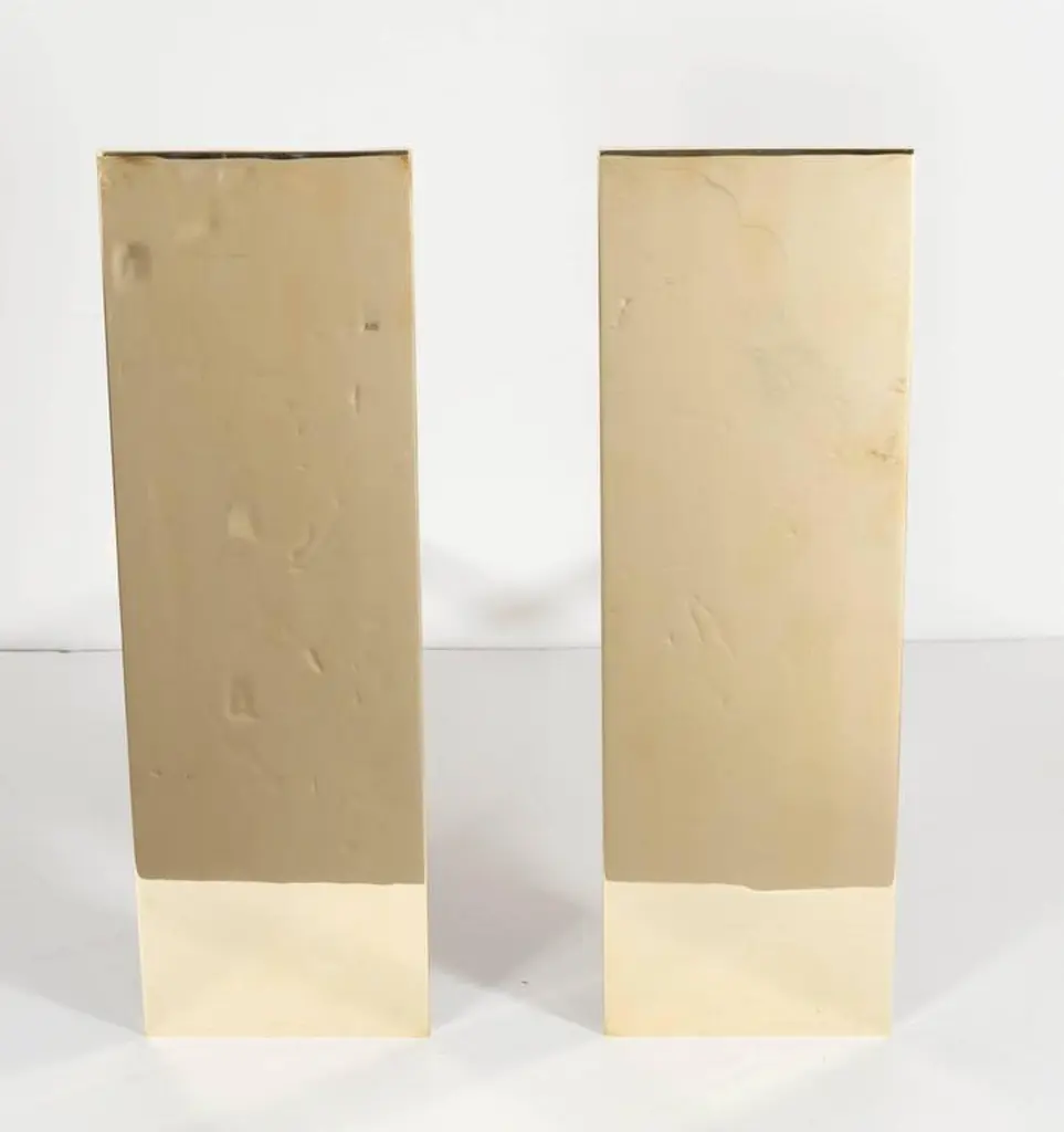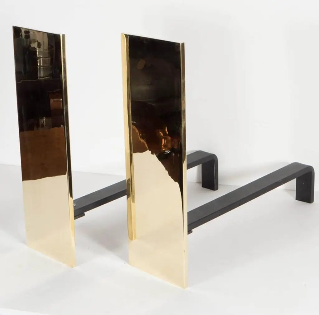 Pair Of Custom Mid-Century Modernist Style Polished Brass Rectangular Andirons