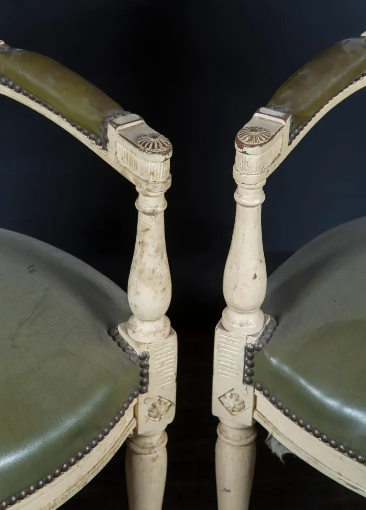 Pair Of French 19th Century Directoire Re-Painted Fauteuils