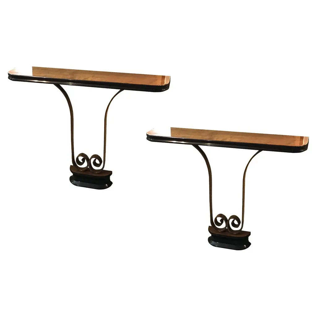 Pair Of Half-Moon Shaped Consoles. Artisan Work.