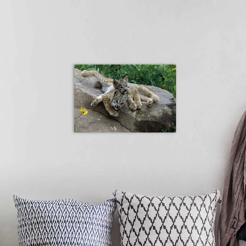Pair of lynx kittens lying on rock, Minnesota wall art for home and office decor. Discover canvas art prints, photos, mural, big canvas art and framed wall art in GreatBigCanvas.com's varied collections.