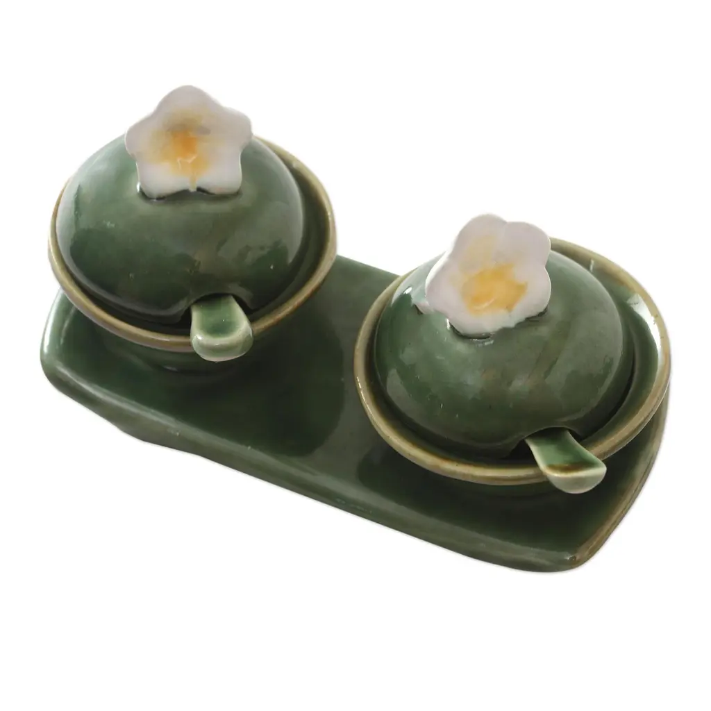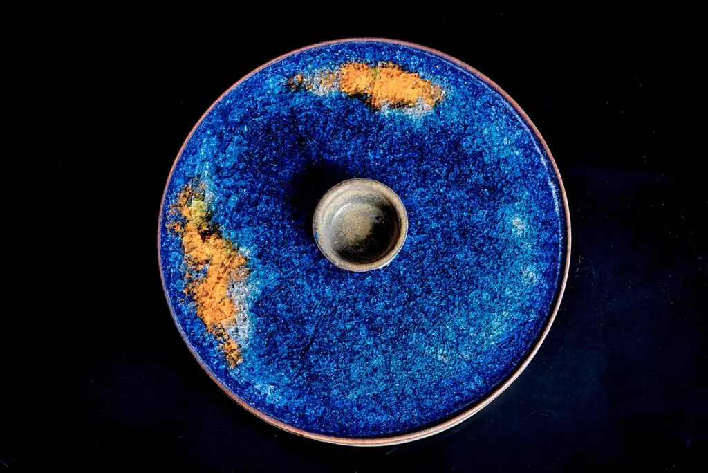 Pair Of Majolika-Karlsruhe With Melted Glass Tops