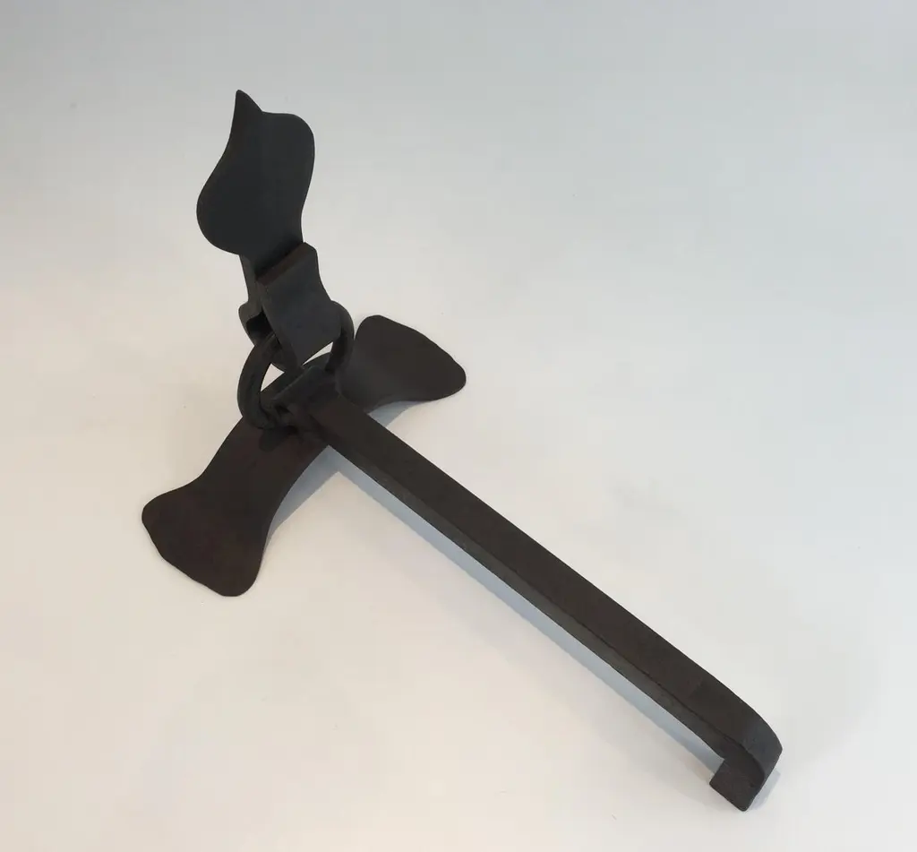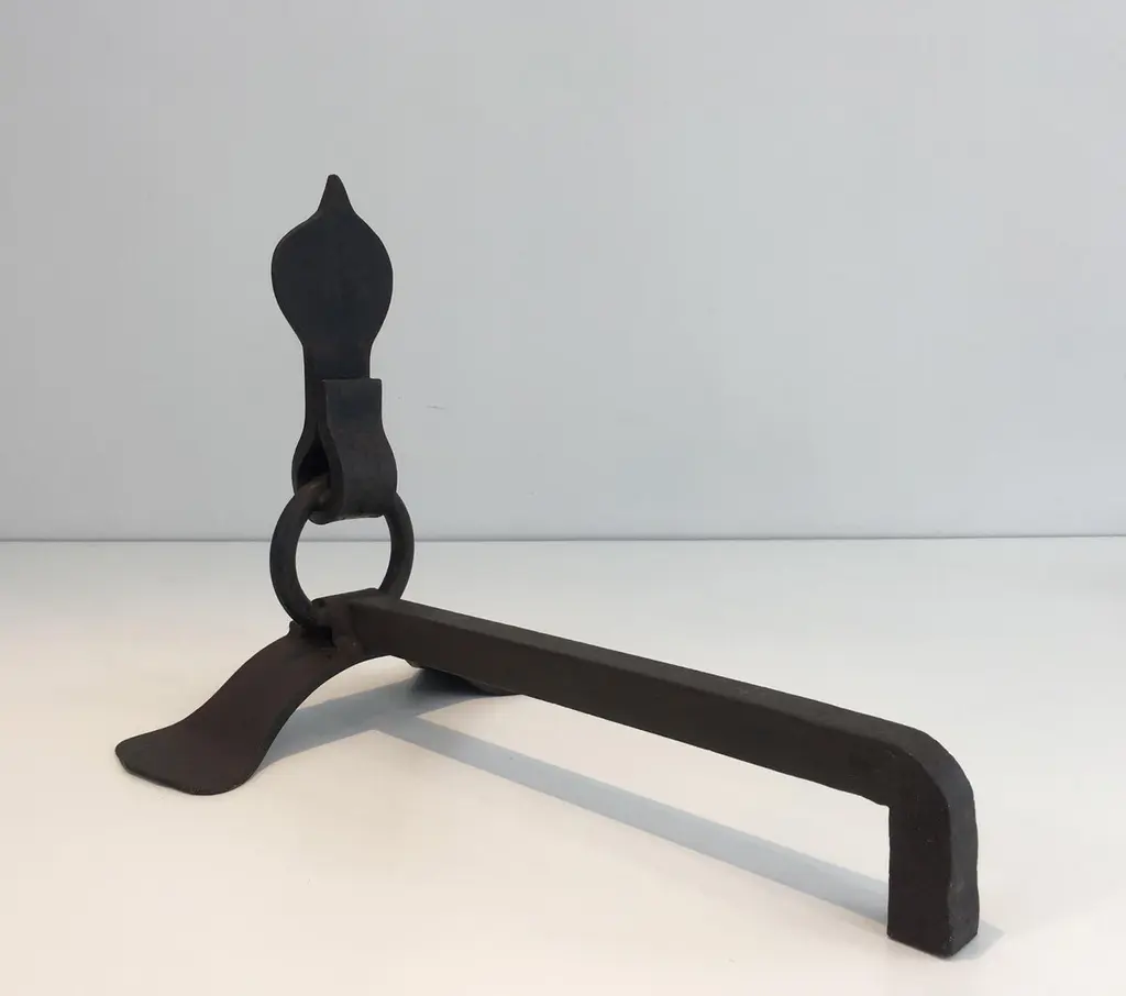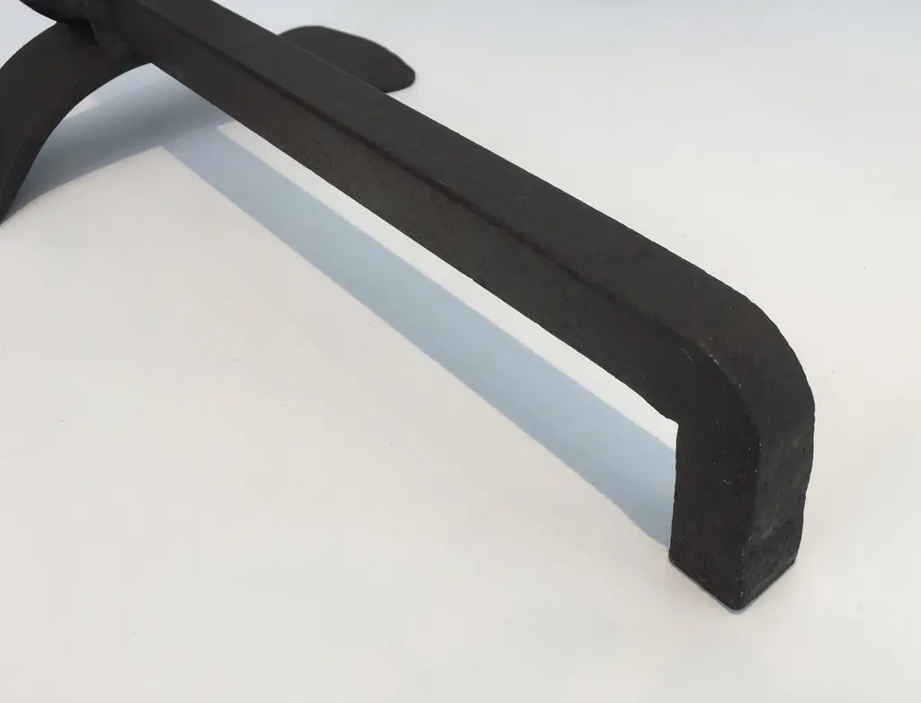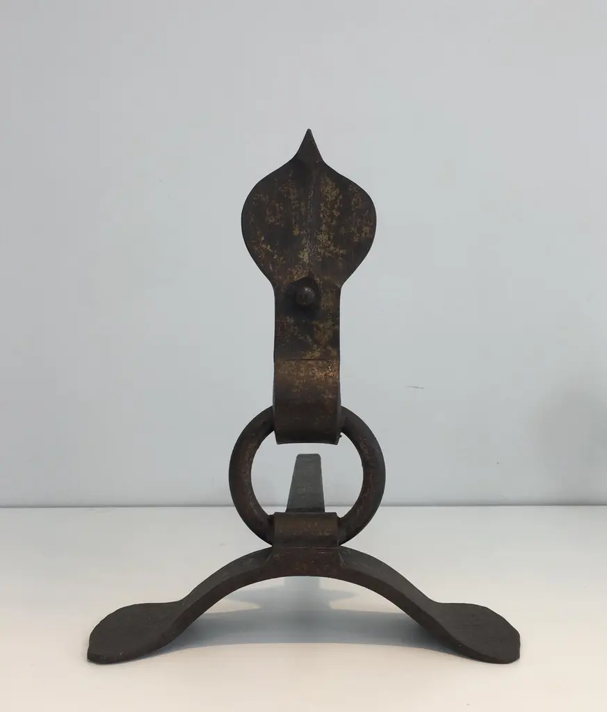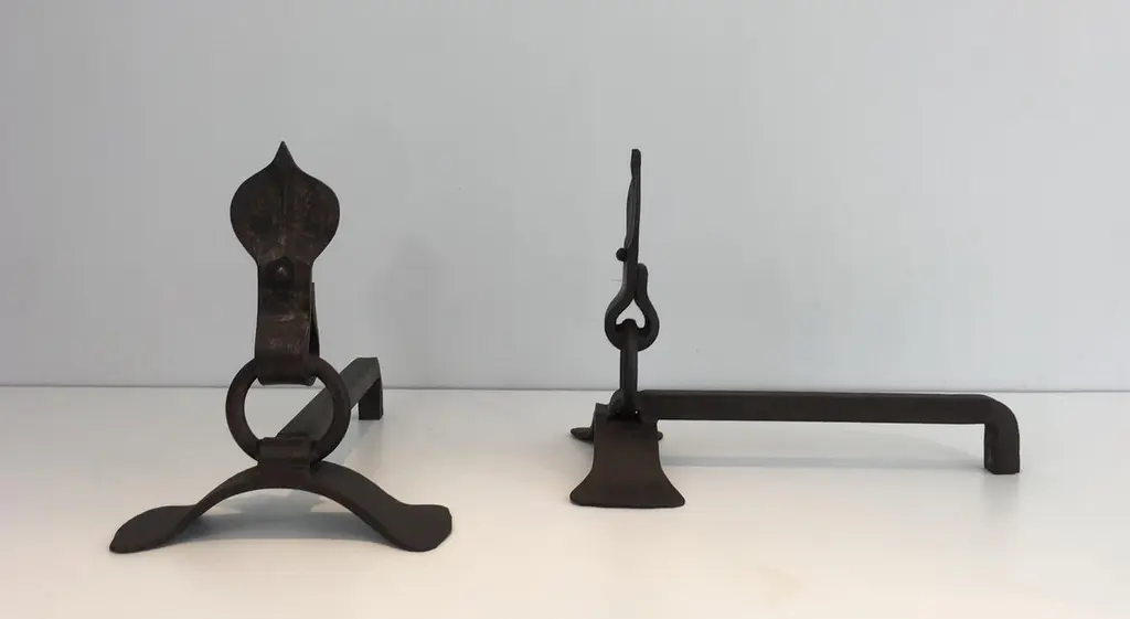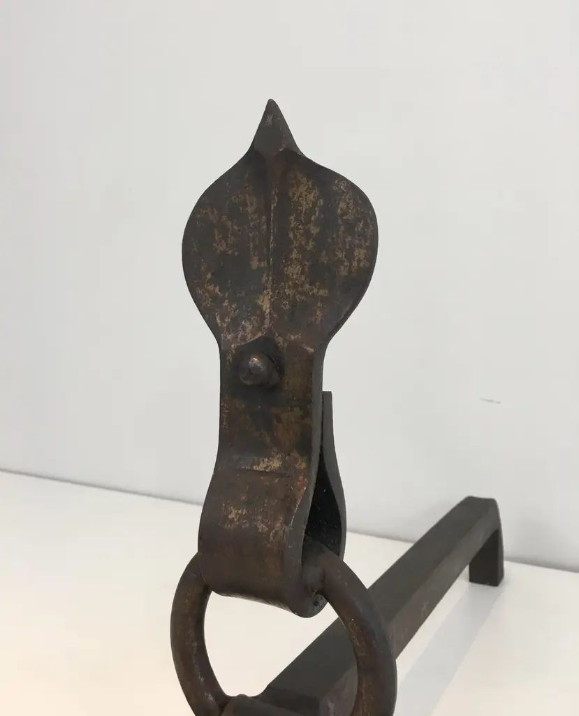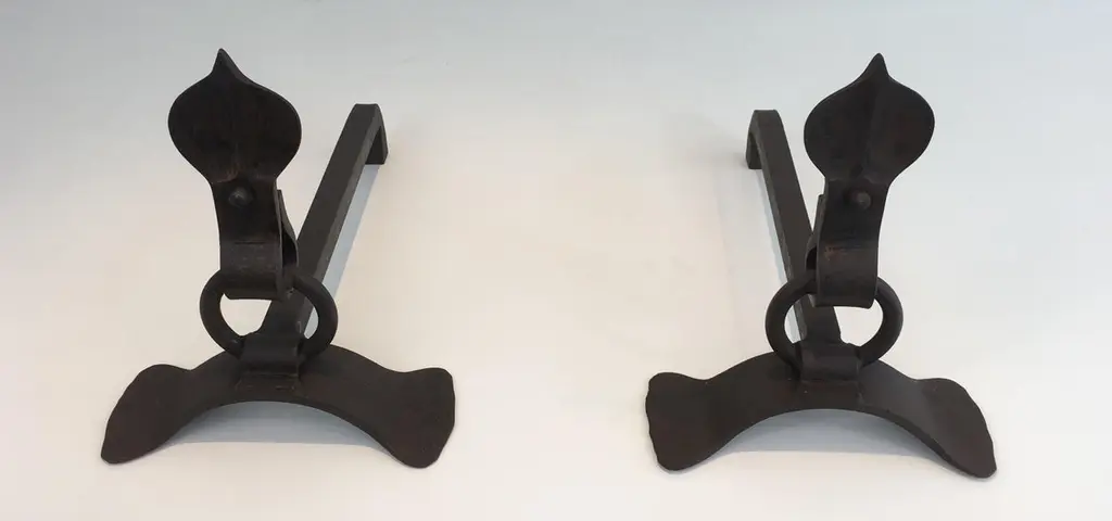 Pair of modernist wrought iron andirons, French, circa 1940.