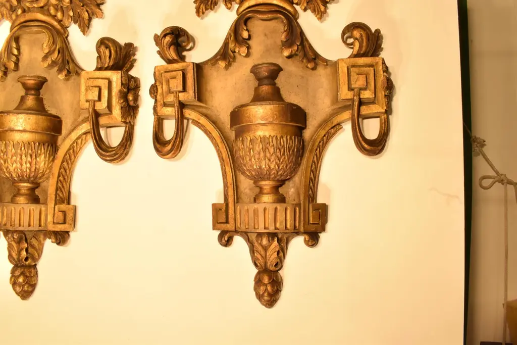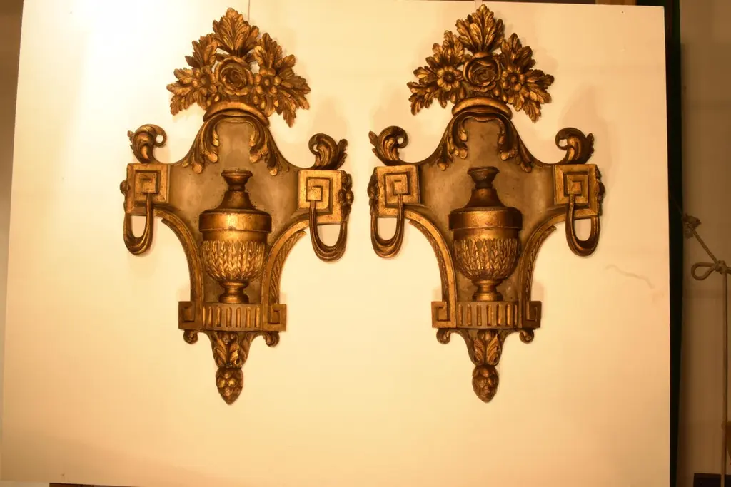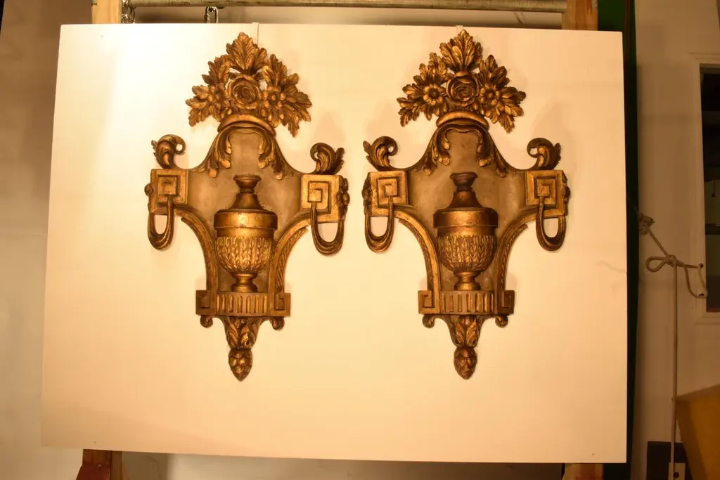 A Superb Pair Patinated & Gilt Wood Ornamental Wall Plaques. Italy, circa 1860. Dimensions: Height 36" Width 23 1/2" Depth 5 1/2"NI1019.