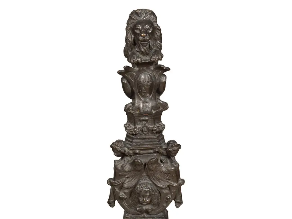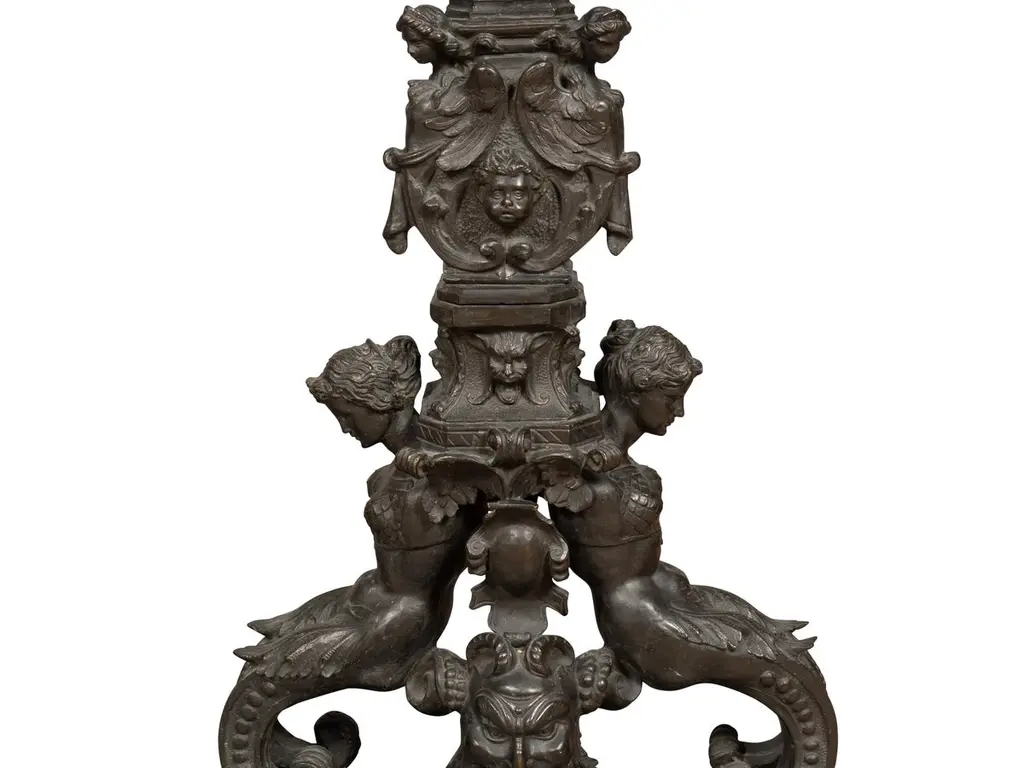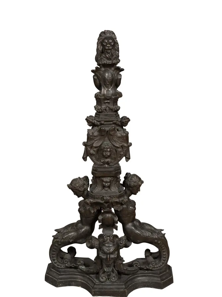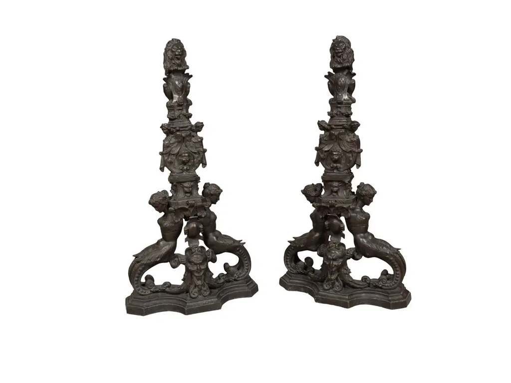 19th century copies of renaissance examples each with lions over cartouches and bracket legs with winged caryatids. The design of these is very reminiscent of Jacque I Androuet du Cerceau.