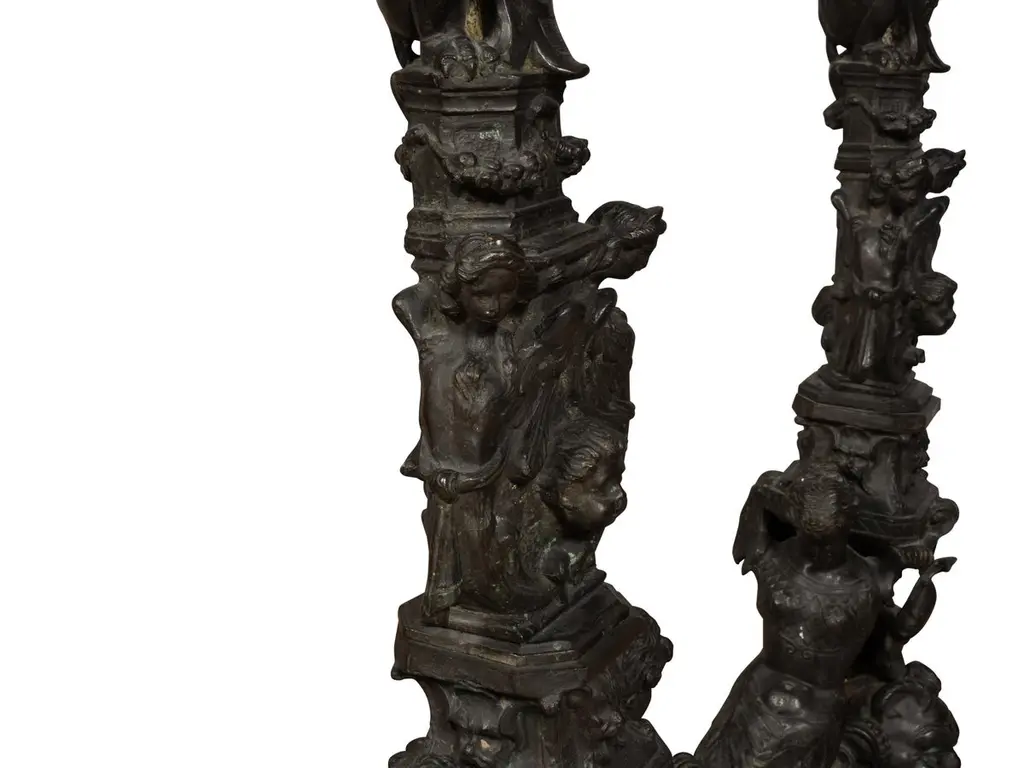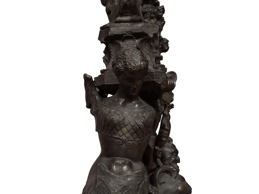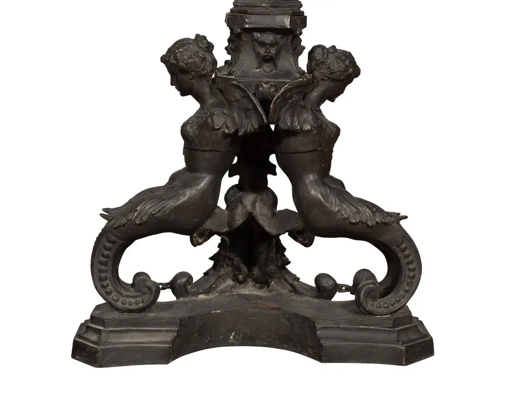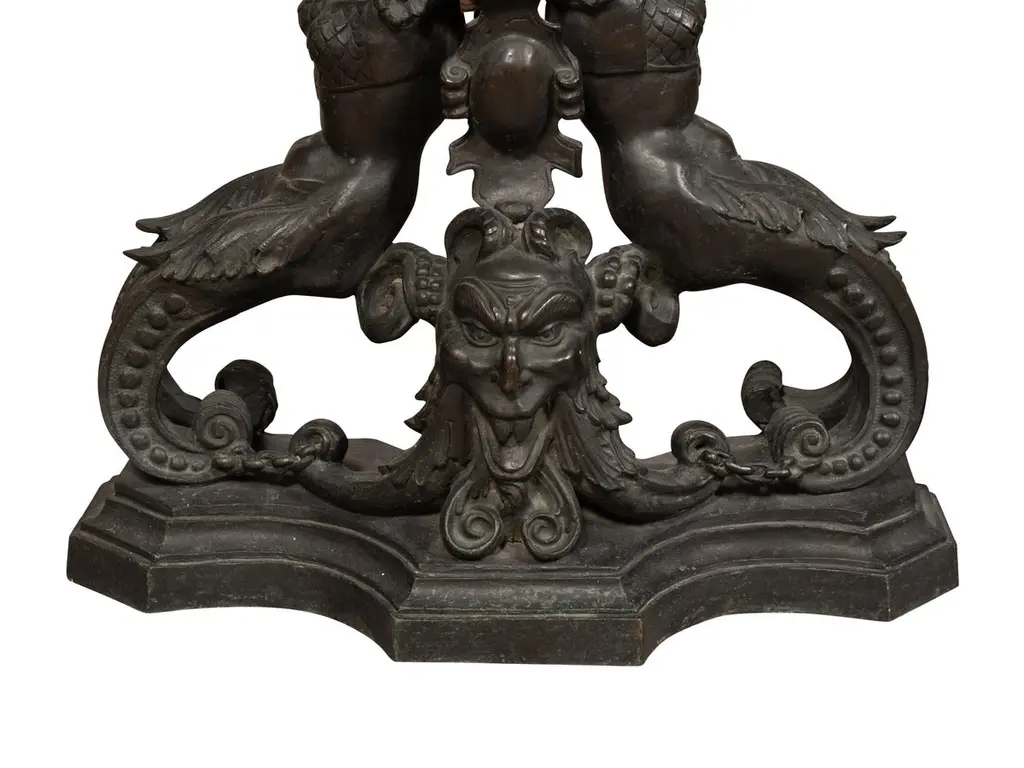 19th century copies of renaissance examples each with lions over cartouches and bracket legs with winged caryatids. The design of these is very reminiscent of Jacque I Androuet du Cerceau.