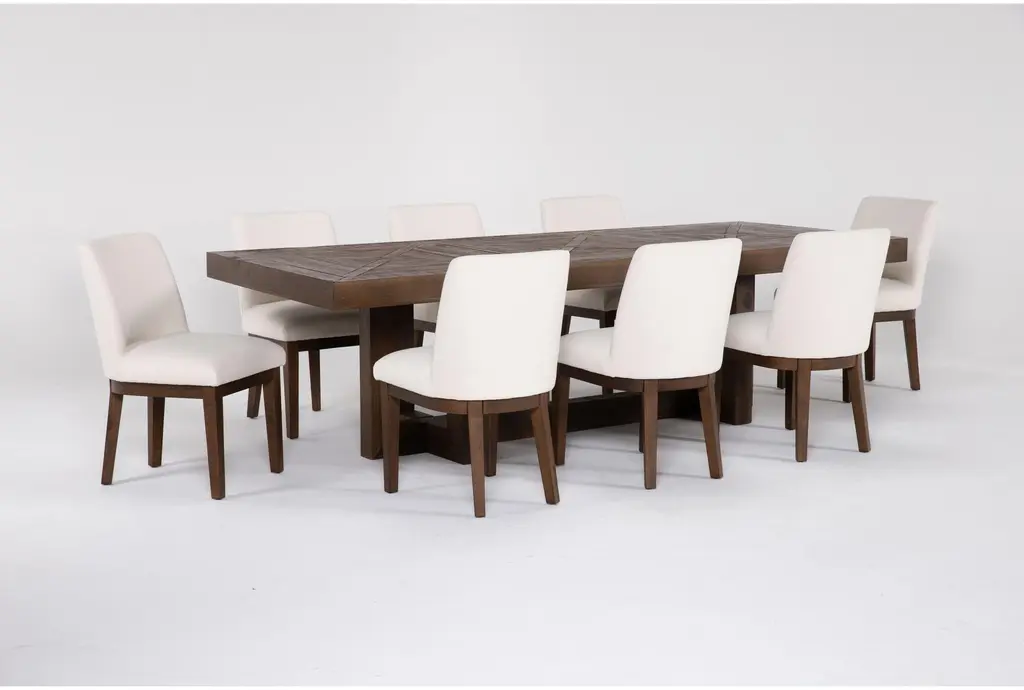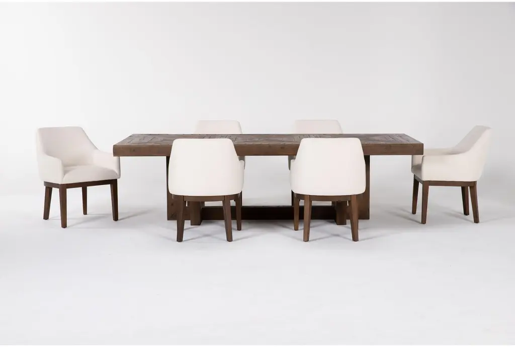 Palazzo Brown Natural Rectangular Solid Pine Wood 106" Dining Table With Side Chair Set For 8 | Parsons | Trestle