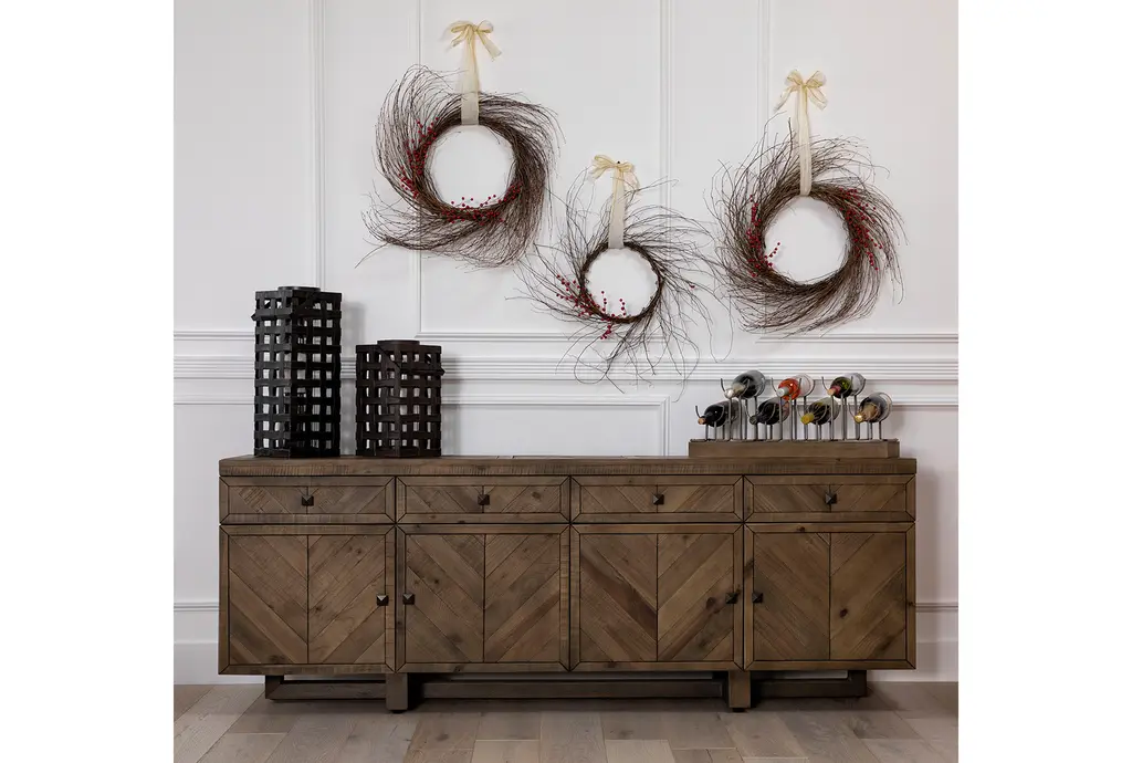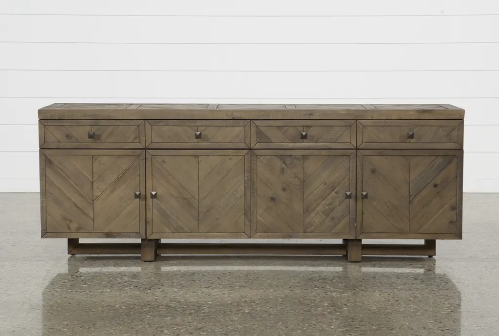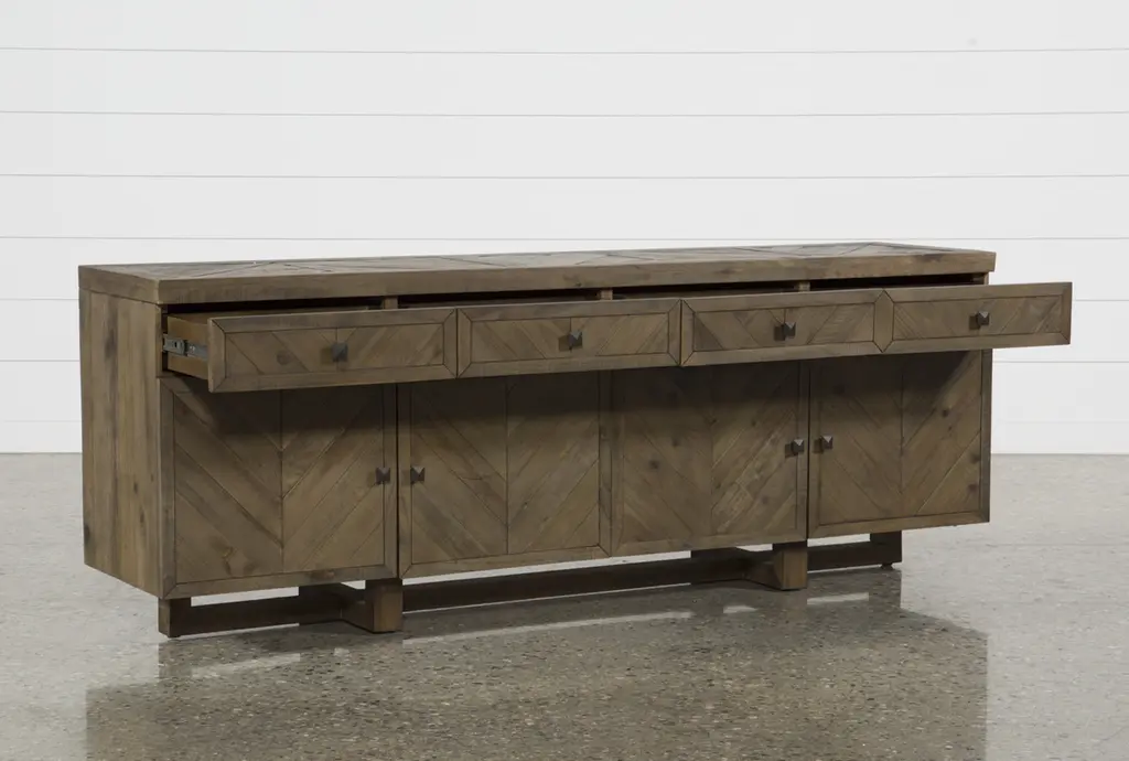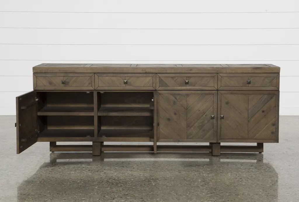 Palazzo Brown Solid Pine Wood 4 Door 4 Drawer 87" Sideboard Buffet | Storage