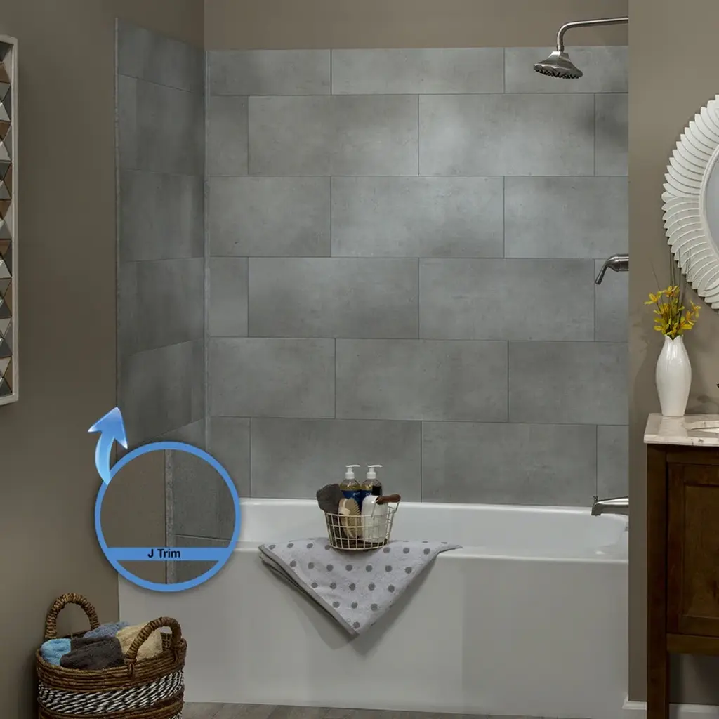 Give your project that professional look with Palisade 94-inch J-Trim. The Palisade 94-inch J-Trim is available in the same finishes as the Palisade Wall Tiles and is designed to be installed on the isolated terminal end of a Palisade Tile. Simply apply adhesive to affix. Each Palisade J-Trim is 94-inches long and 5 mm wide and adds a professional touch to your project.