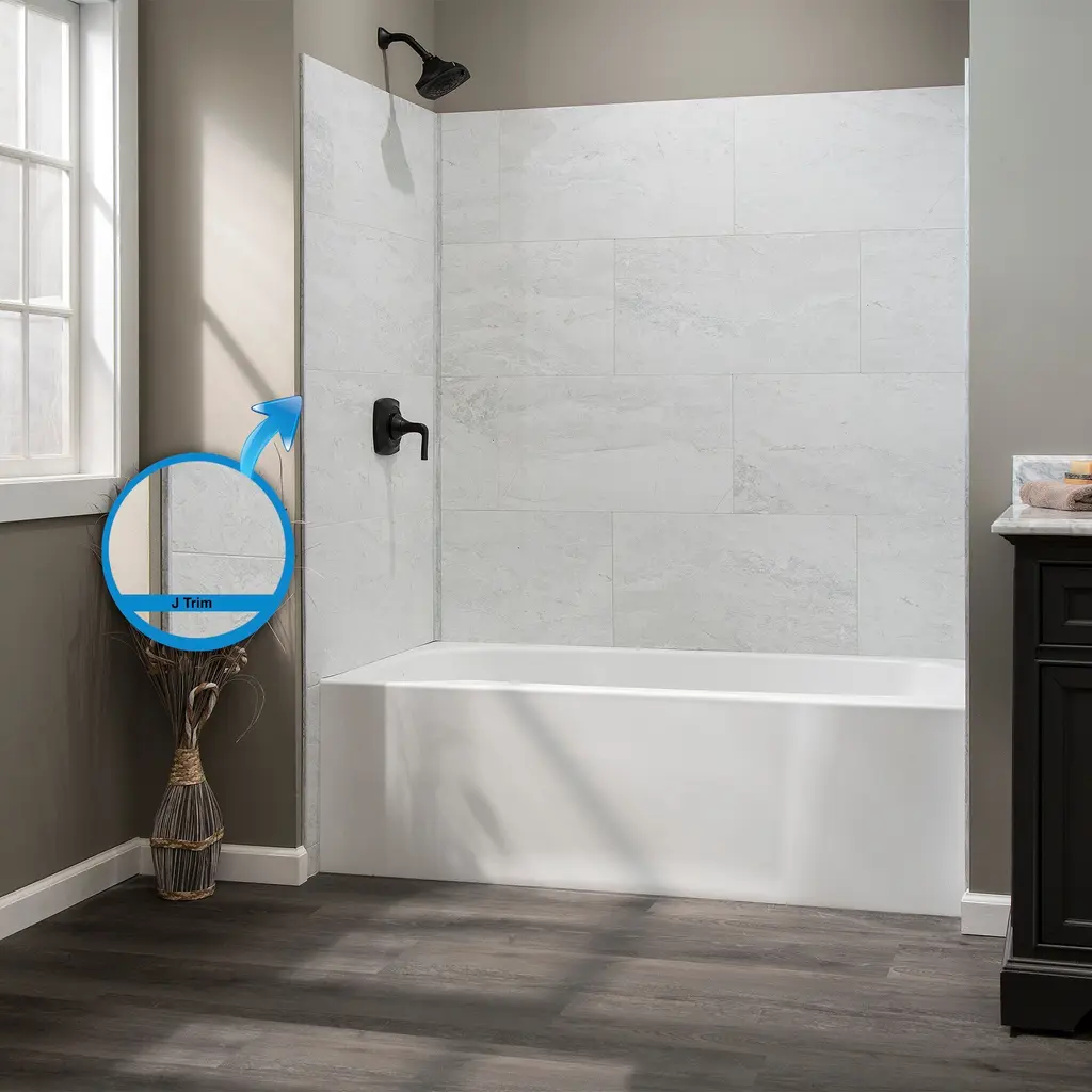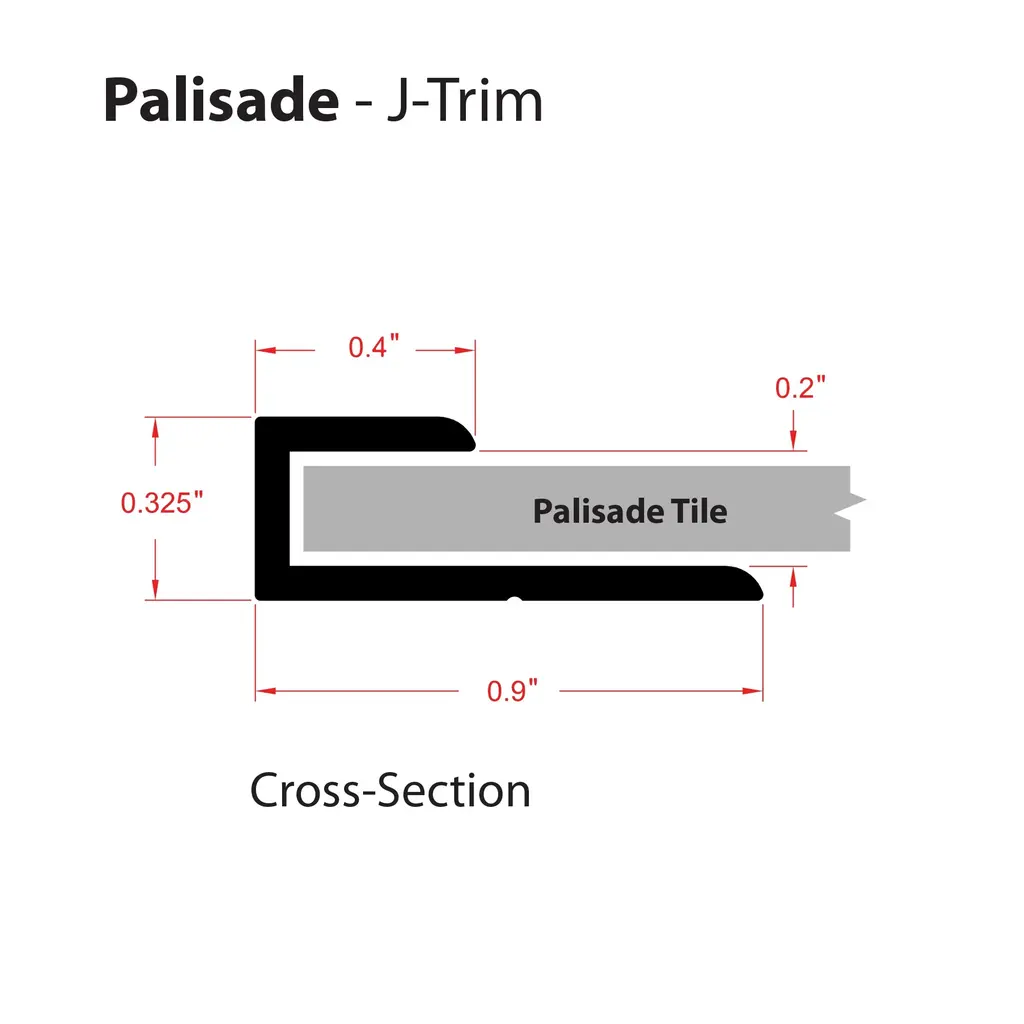 Give your project that professional look with Palisade 94-inch J-Trim. The Palisade 94-inch J-Trim is available in the same finishes as the Palisade Wall Tiles and is designed to be installed on the isolated terminal end of a Palisade Tile. Simply apply adhesive to affix. Each Palisade J-Trim is 94-inches long and 5 mm wide and adds a professional touch to your project.