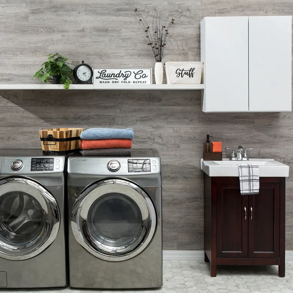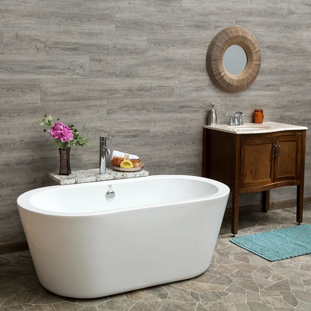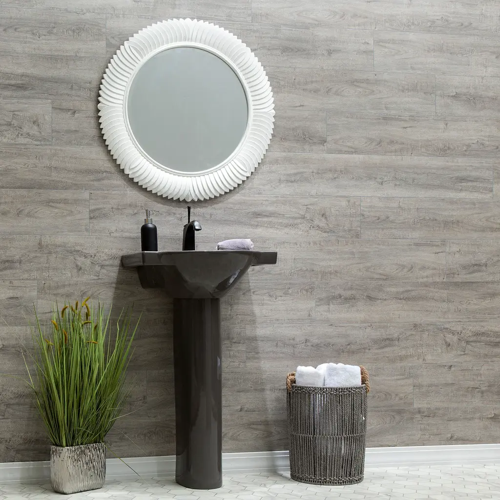 Palisade Waterproof Interlocking Wall Planks are 100% waterproof and do not require grout, making them ideal for moist environments. Palisade Wall Planks are easily installed using tube adhesive; simply interlock the edges. No special tools or saws are required, eliminating the need for contractors. The engineered rigid core technology provides warmth in a durable, scratch and UV-resistant tile. Palisade is available in many elegant finishes to fit any room's decor. • Elegant plank look combined with no-mess grout appearance, ideal for any room in your home • Engineered vinyl core topped with decorative foil and protective film provides a rigid, lightweight, durable wall plank • Interlocking edge design provides easy project layout, perfect tile connection and a no-mess grout design • 100% waterproof - ideal for moist or wet environments, even showers • Palisade can be applied over existing tiles, eliminating the need for removal or demolition • Perfect for kitchens, baths, basements, laundry rooms, accent walls • Available in a carton of 7 planks; an 81.5 sq ft kit which includes 5 boxes or 35 pieces of interlocking Palisade planks, two 94" Inside Trims, two 94" J-Trims, two 94" L-Trims, five tubes of adhesive and two tubes of sealer; and a sample