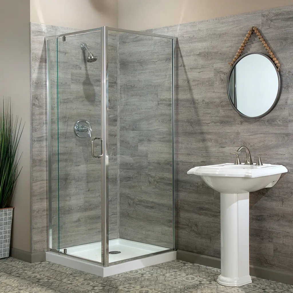 Palisade Waterproof Interlocking Wall Planks are 100% waterproof and do not require grout, making them ideal for moist environments. Palisade Wall Planks are easily installed using tube adhesive; simply interlock the edges. No special tools or saws are required, eliminating the need for contractors. The engineered rigid core technology provides warmth in a durable, scratch and UV-resistant tile. Palisade is available in many elegant finishes to fit any room's decor. • Elegant plank look combined with no-mess grout appearance, ideal for any room in your home • Engineered vinyl core topped with decorative foil and protective film provides a rigid, lightweight, durable wall plank • Interlocking edge design provides easy project layout, perfect tile connection and a no-mess grout design • 100% waterproof - ideal for moist or wet environments, even showers • Palisade can be applied over existing tiles, eliminating the need for removal or demolition • Perfect for kitchens, baths, basements, laundry rooms, accent walls • Available in a carton of 7 planks; an 81.5 sq ft kit which includes 5 boxes or 35 pieces of interlocking Palisade planks, two 94" Inside Trims, two 94" J-Trims, two 94" L-Trims, five tubes of adhesive and two tubes of sealer; and a sample
