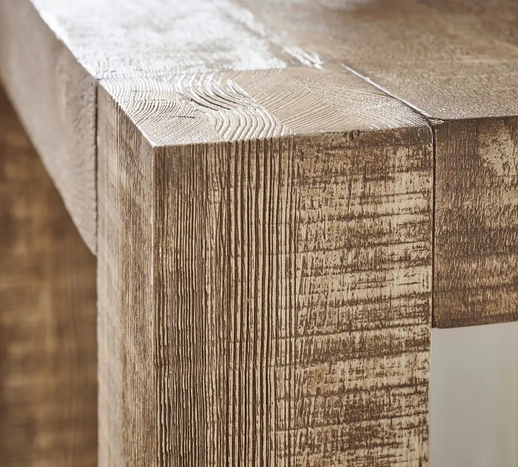 A celebration of reclaimed pine, this rustic collection has a storied past. Age and chatter marks are hallmarks of salvaged wood, giving it a found look that makes you wonder what stories these tables could tell.