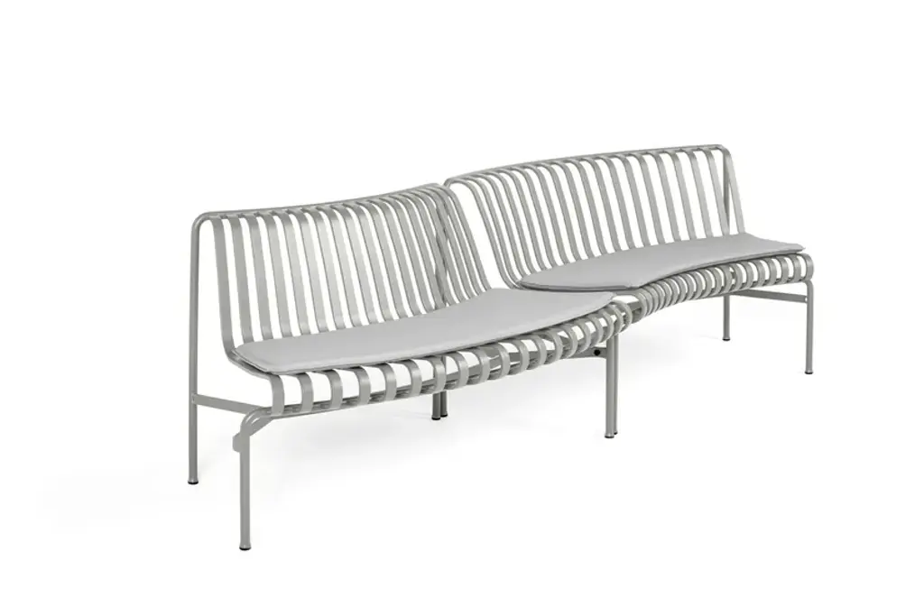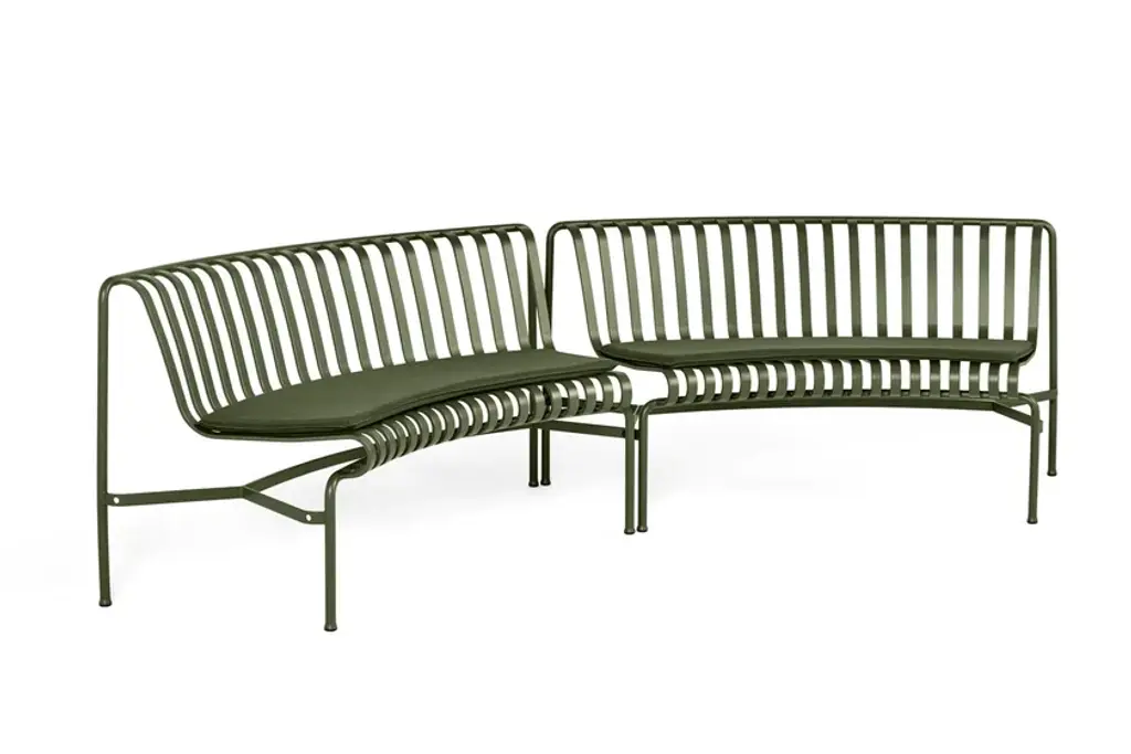 To add extra comfort to the Palissade bench collection, designed by the French designer duo Ronan & Erwan Bouroullec, a specially shaped cushion has been designed to perfectly fit the curved shape of the benches. The thin lightly padded cushion features a non-slip bottom to keep it firmly in place. Made of fabric covered in olefin, a teflon fabric with a water-repellent treatment.The cushions are available in three colours and can be used all year round:- Anthracite- Sky grey- Olive- Iron red