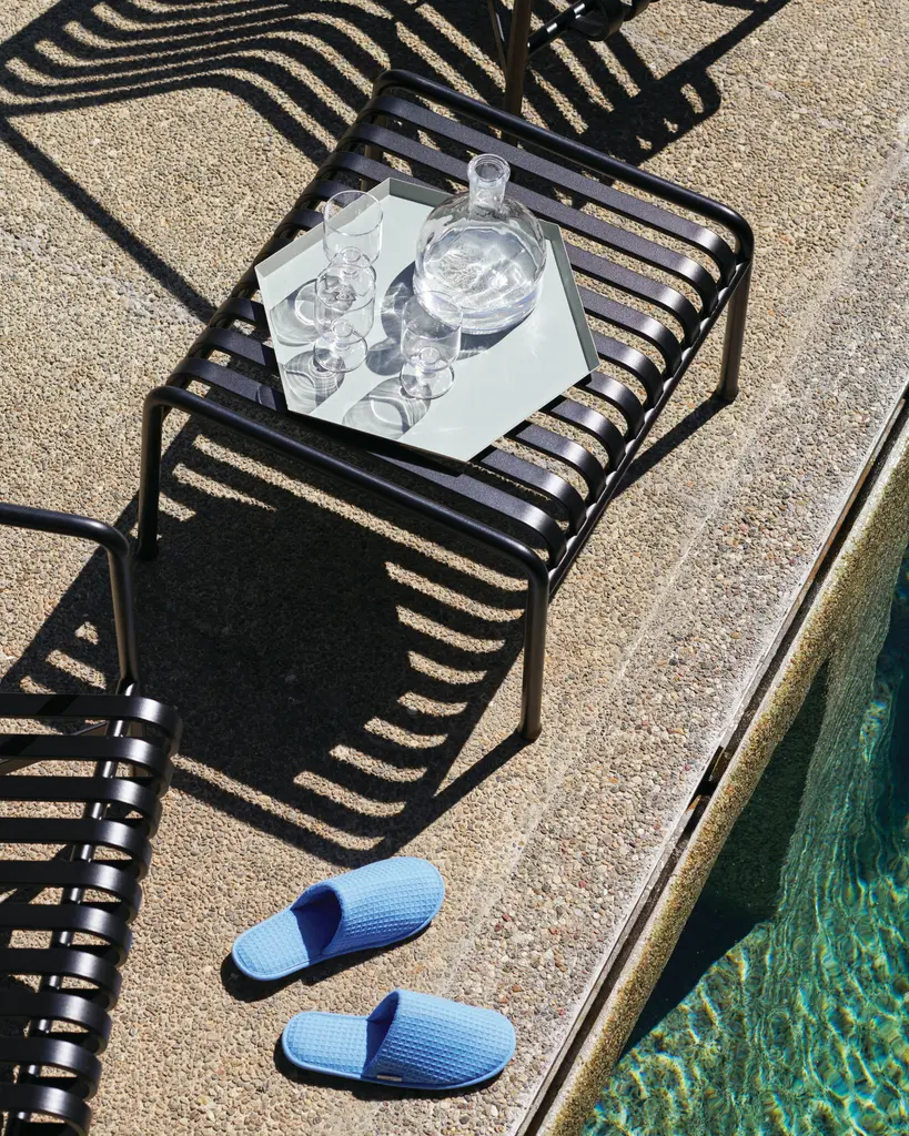 For the Danish design company HAY, brothers Ronan and Erwan Bouroullec created the Palissade Collection (2015). Designed in color and form to integrate effortlessly with its surroundings, this collection stands out for its combination of visual simplicity and core strength. Elegant without being fragile and strong without being bulky, the Palissade Outdoor Ottoman provides a comfortable place to rest your feet and can be used as an extra seat. Made in China.