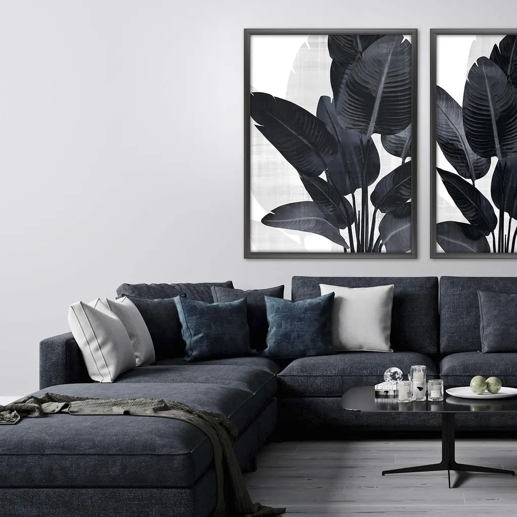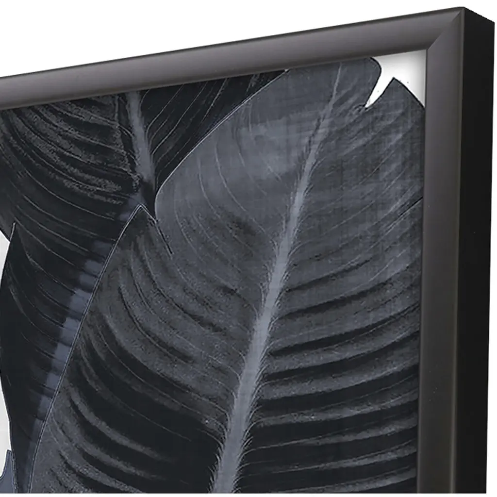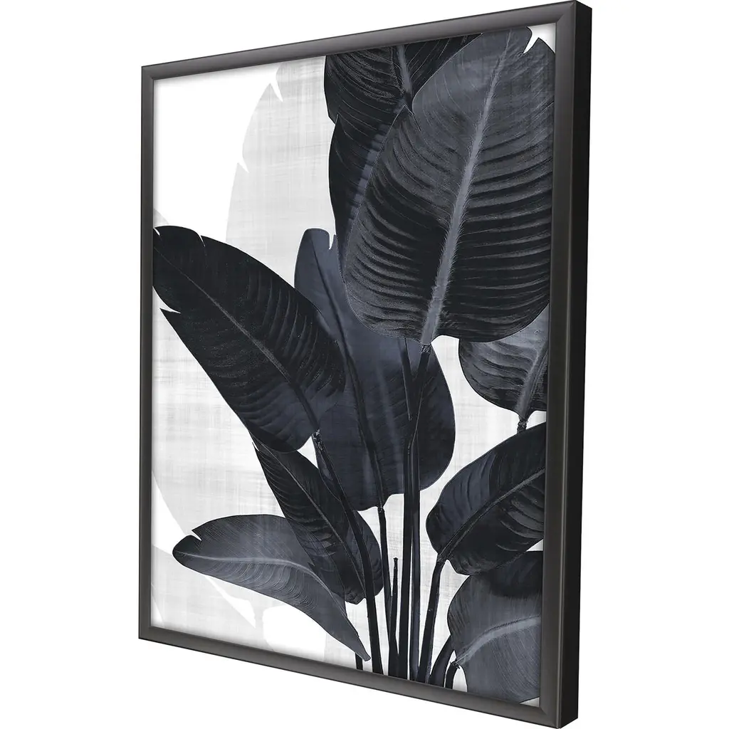 A modern take on the botanical, a dynamic palm was inspired by the tropical flora on Harbour Island. Framed in a black matte shadow wood moulding.