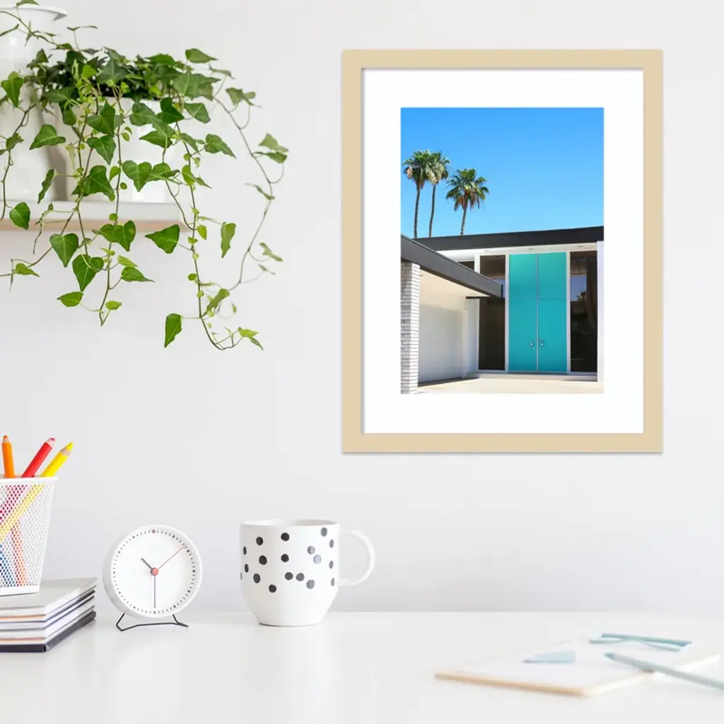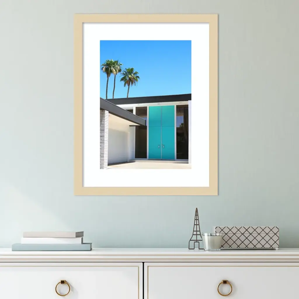 This photo print brings the vibes of the West Coast to your walls, washing your space in a sunny, warm feeling. Printed in the USA, this piece by photographer Rachel Dowd captures cloudless skies and dramatic homes in Palm Springs. This piece is giclee-printed on paper with an accurate reproduction. It arrives framed and covered with acrylic glass that helps protect the image from fading. Wall mounting hardware is included, so it's ready to hang right out of the box.