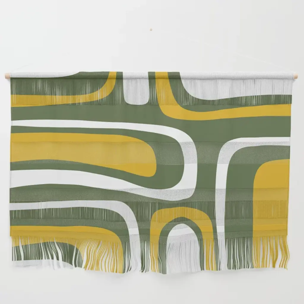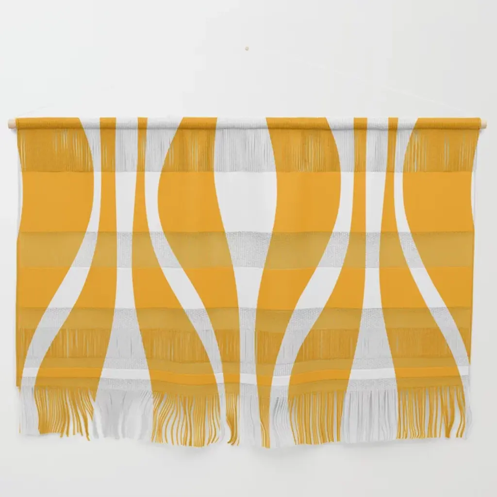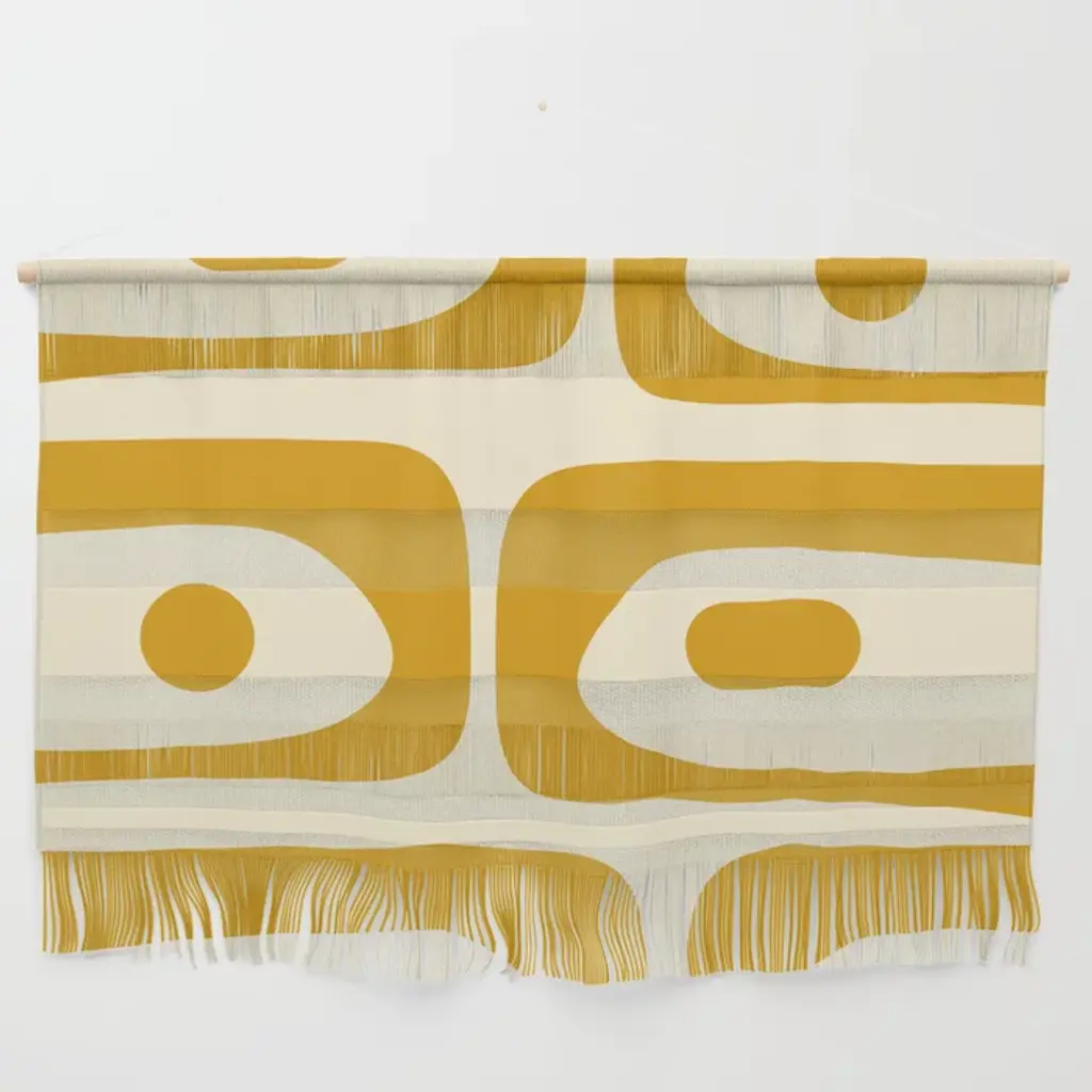 Palm Springs Midcentury Modern Abstract Pattern In Mustard Gold And White Wall Hanging