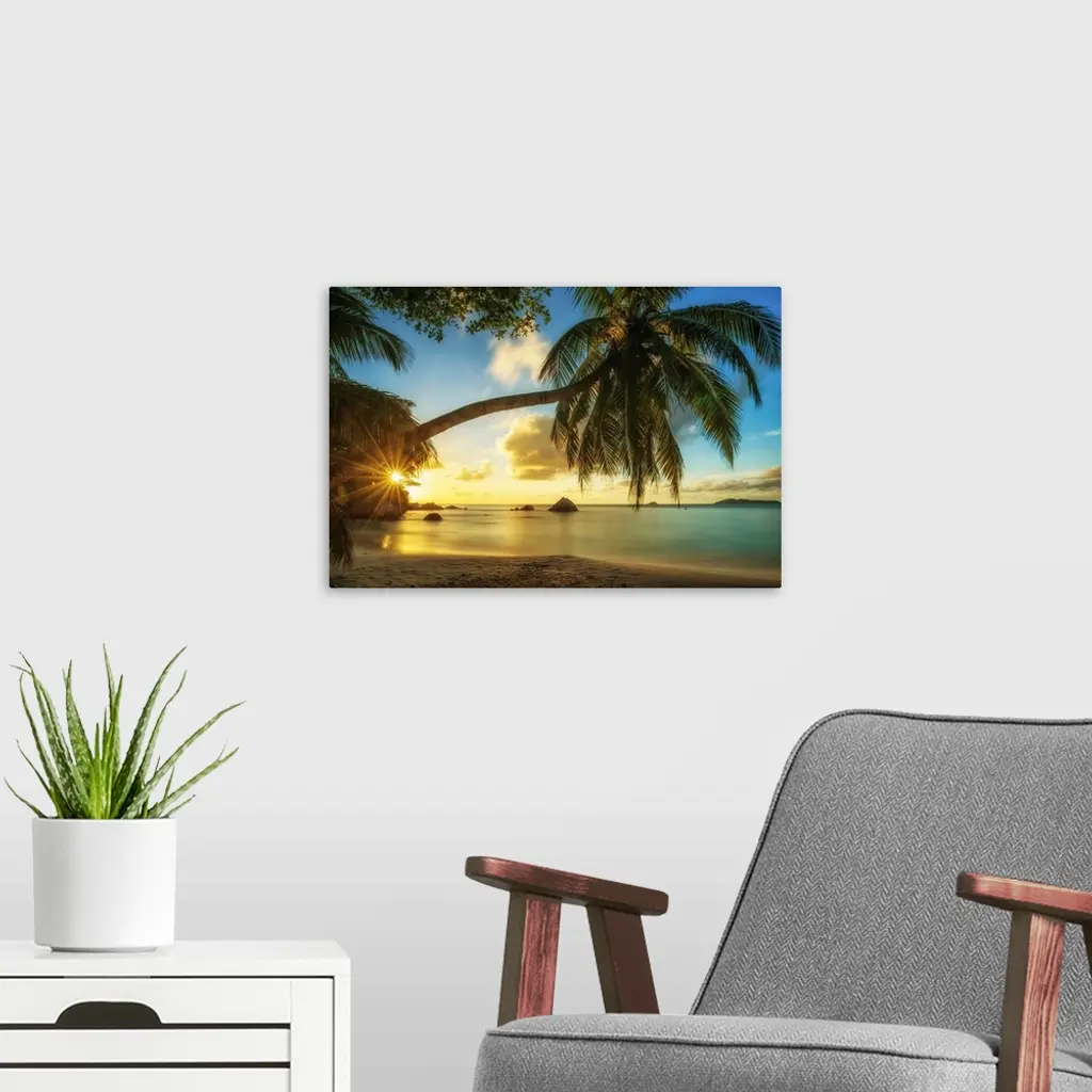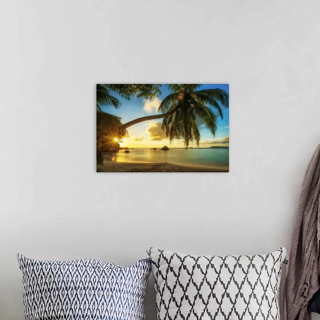 Palm Tree At Sunset, Anse Lazio Beach, Praslin, Seychelles