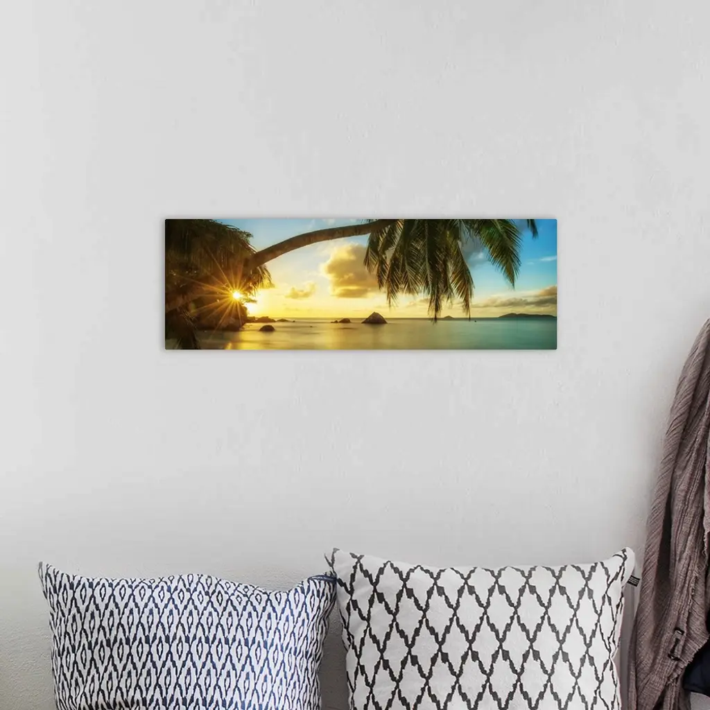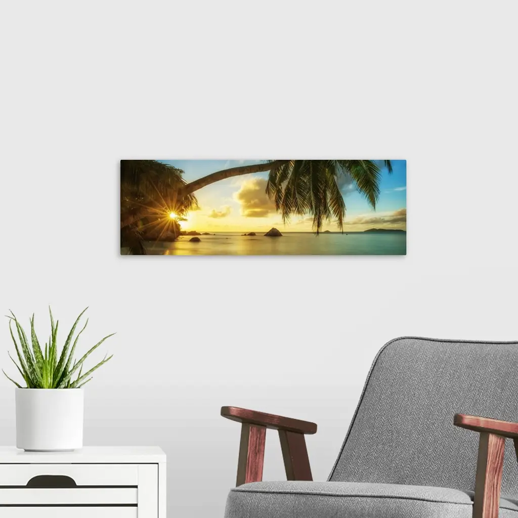 Palm Tree At Sunset, Anse Lazio Beach, Praslin, Seychelles