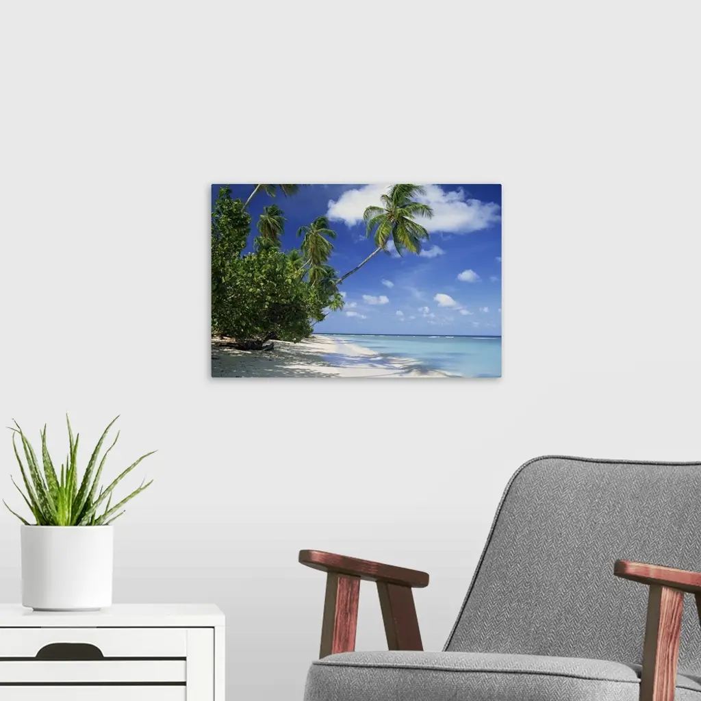 Palm tree on a tropical beach on the island of Tobago, West Indies, Caribbean wall art for home and office decor. Discover canvas art prints, photos, mural, big canvas art and framed wall art in GreatBigCanvas.com's varied collections.
