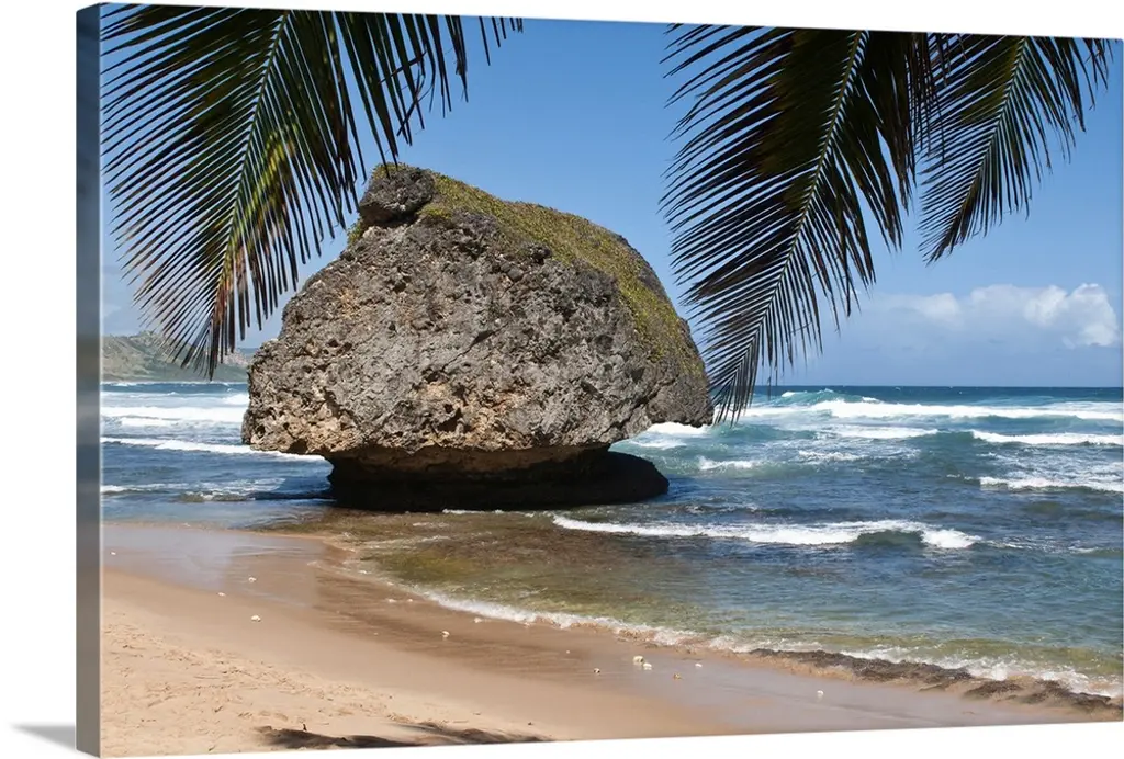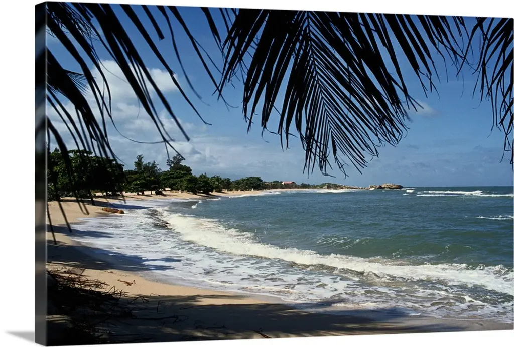 Palm Tree Shadows On Sand Of A Tropical Beach At The Water's Edge, Kihei, Maui, Hawaii
